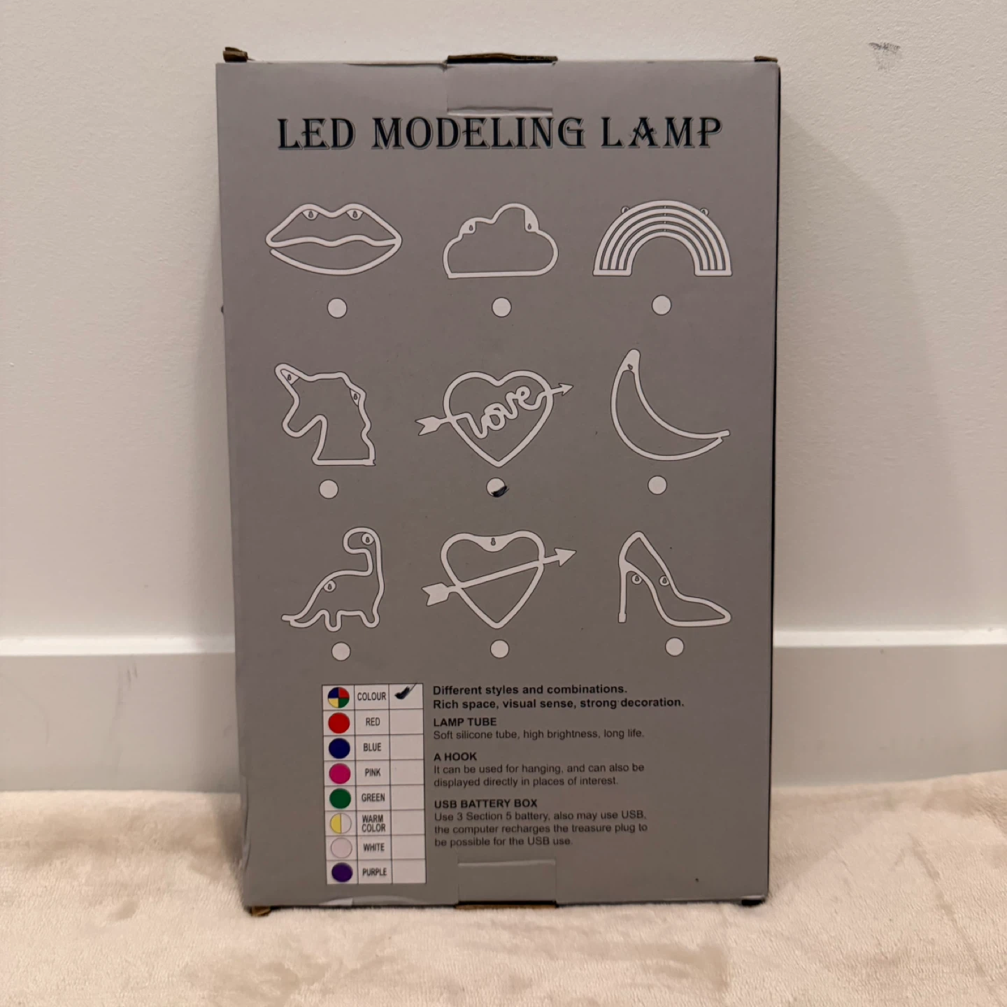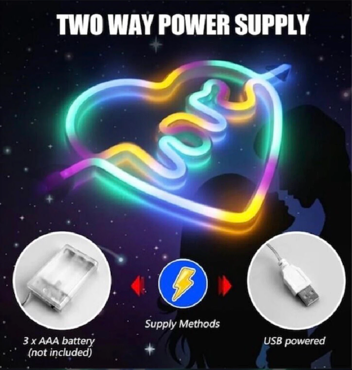 This LED modeling lamp features a love heart with an arrow design. It's USB powered or can use 3 AAA batteries (not included). The soft silicone tube provides a bright, long-lasting light.