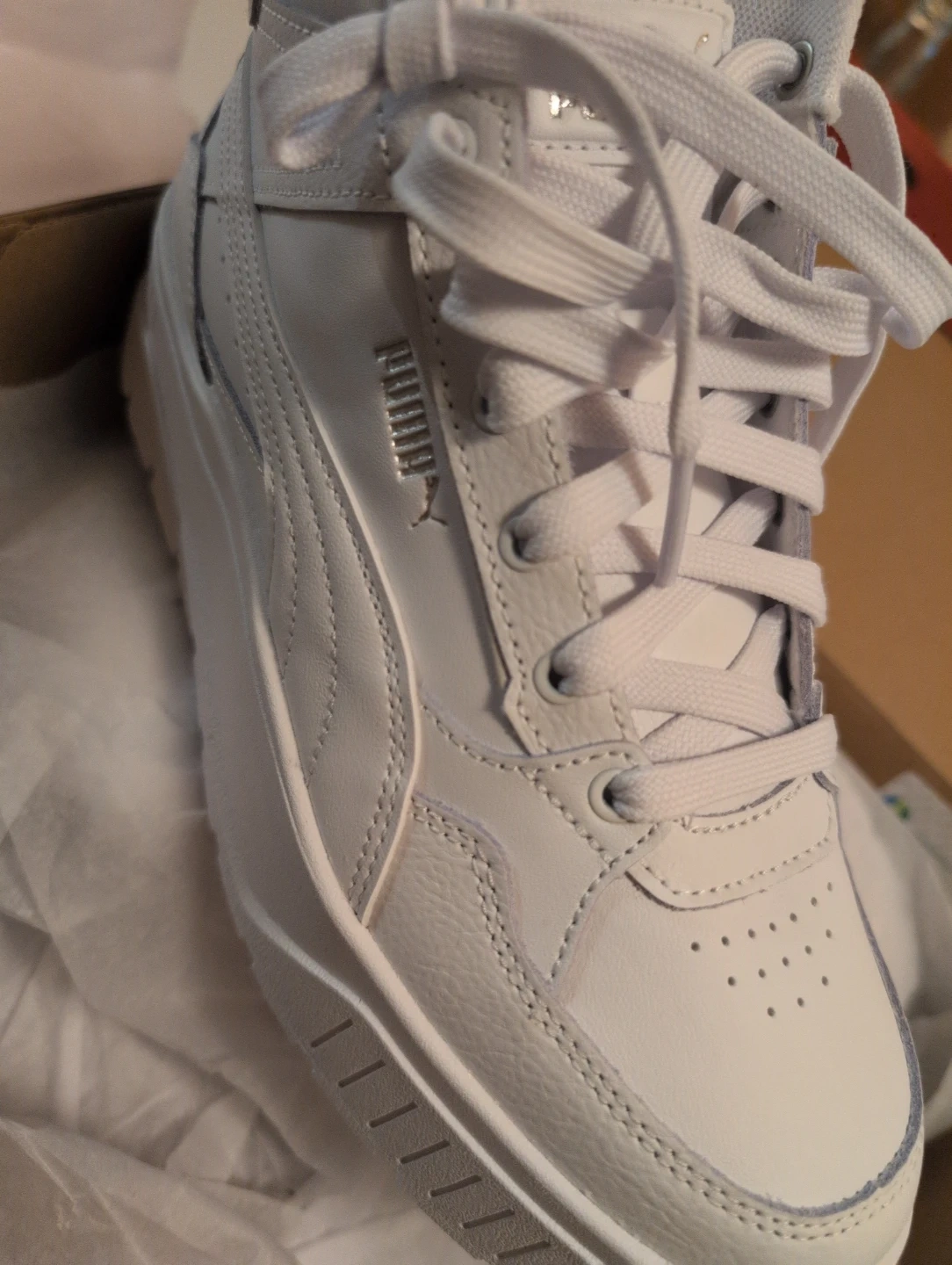 Puma Karmen II Idol Mid sneakers in white. Women's US size 8, UK 5.5, EUR 38.5. Made in China. Includes original box.
