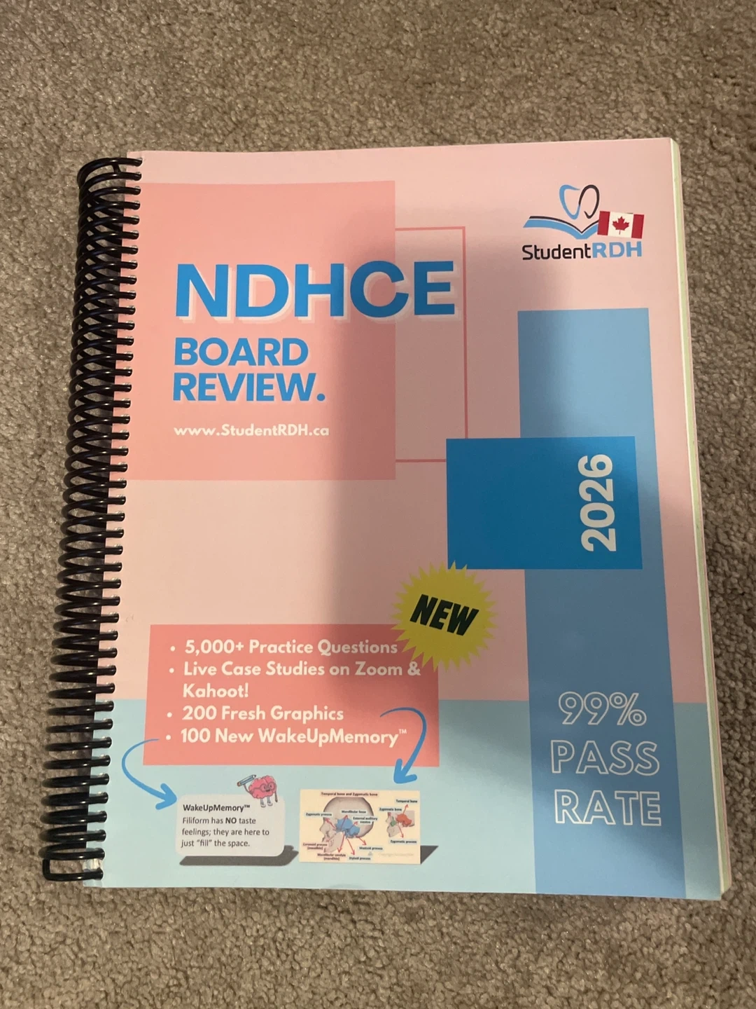 This NDHCE Board Review book offers over 5,000 practice questions and live case studies. It includes 200 fresh graphics and 100 new WakeUpMemory sections. The review material covers dental hygiene board exam preparation.