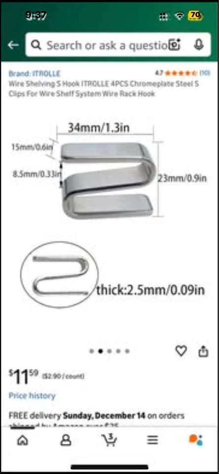 Buy & SellWire Shelving S Hook ITROLLEWire Shelving S Hook ITROLLE$1Over 100PCS Chromeplate Steel S Clips for Wire Shelf System. $1 Each. Get more for a discount. Check out my other listings for more items!WHERE TO MEETKingsbridge(West Bronx) 1 trainView MapSELLERverifiedGary HKingsbridge661 review0 chats·0 favorites·3 viewsSEND CHAT TO SELLERHi Gary H! I’m interested in your listing.Hi Gary H! I’m interested in your listing.Get the Karrot app to chatSign In to chat
