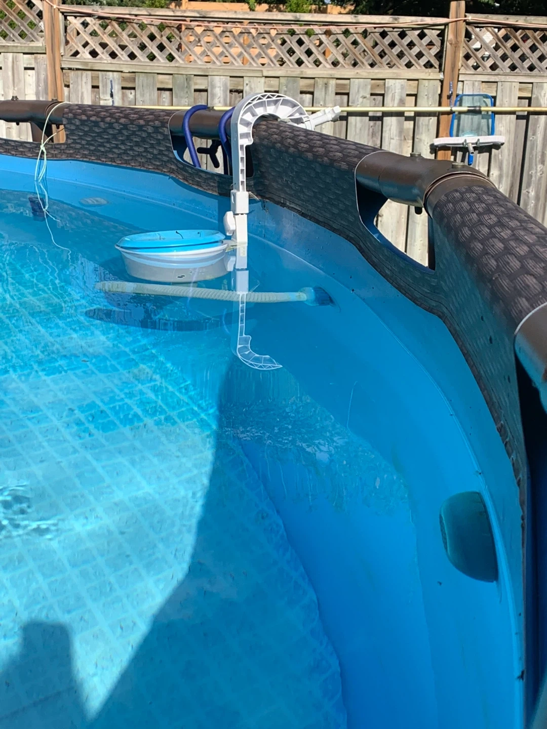 18’ round above ground pool, 3 years old. Includes: pump and filter, 2 covers, some chlorine pucks and test strips, a Pool Blaster Cordless Vacuum with filters, attachable skimmer basket, skimmer net and pole and some pool floats.