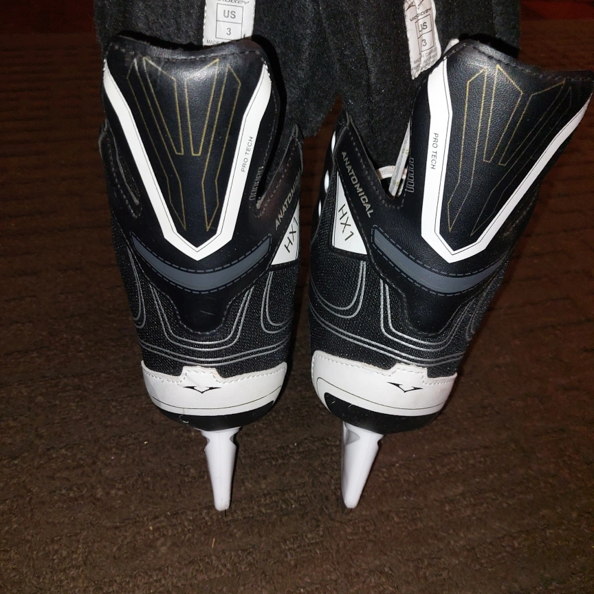 Black hockey skates, size 3. Anatomical HX1 Pro-Tech. Brand New shoelaces are tucked inside the skates.