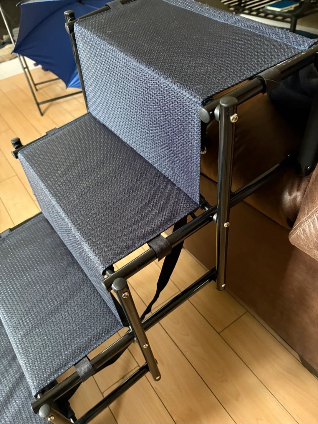 Selling a set of PetSafe CozyUp Folding Pet Steps in blue! These steps are perfect for helping your furry friend reach higher places, like the couch or bed. They're in great condition and fold up for easy storage when not in use. Lightweight and portable, these steps are a must-have for pet owners!up to 100 lbs