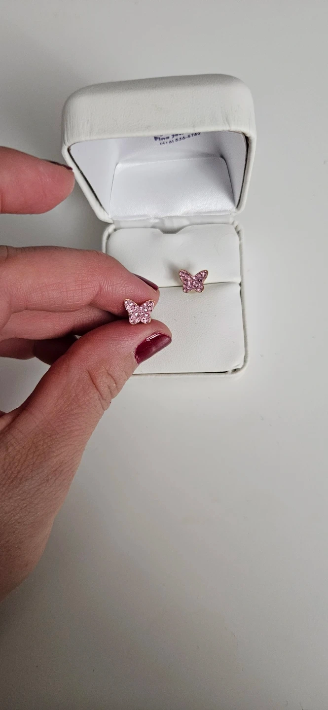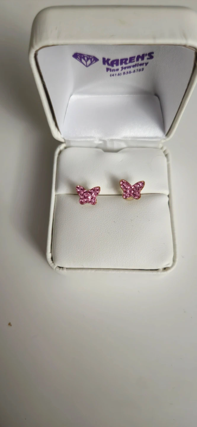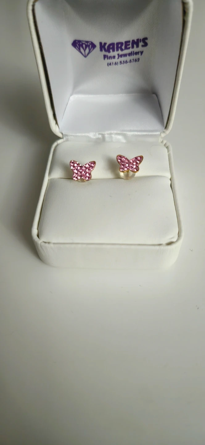 Cute pair of butterfly earrings from Karen's Fine Jewellery! They're pink and never used.