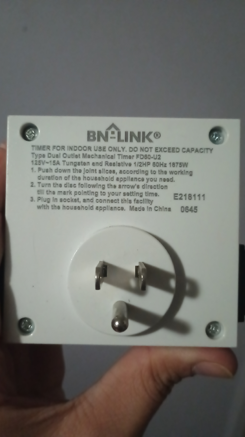 Selling a BN-LINK dual outlet mechanical timer, model FD60-U2. It's designed for indoor use and can handle 125V 15A resistive and 1/2HP 60Hz 1875W loads. Great for automating your appliances!