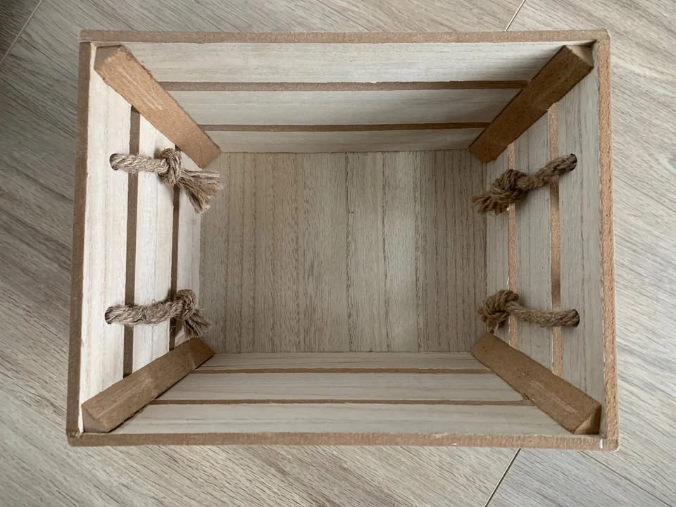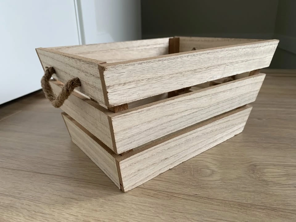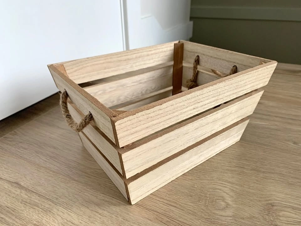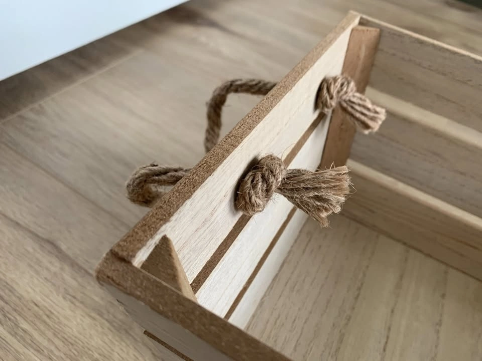 Small Decorative Wooden Storage Crate Basket with Rope Handles