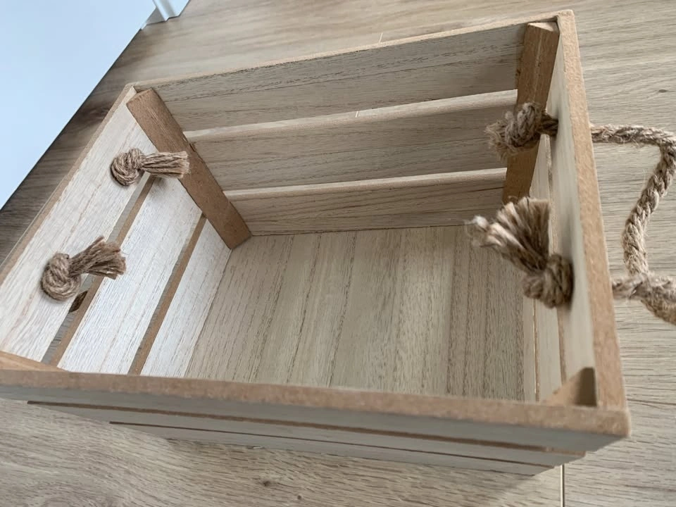 Small Decorative Wooden Storage Crate Basket with Rope Handles