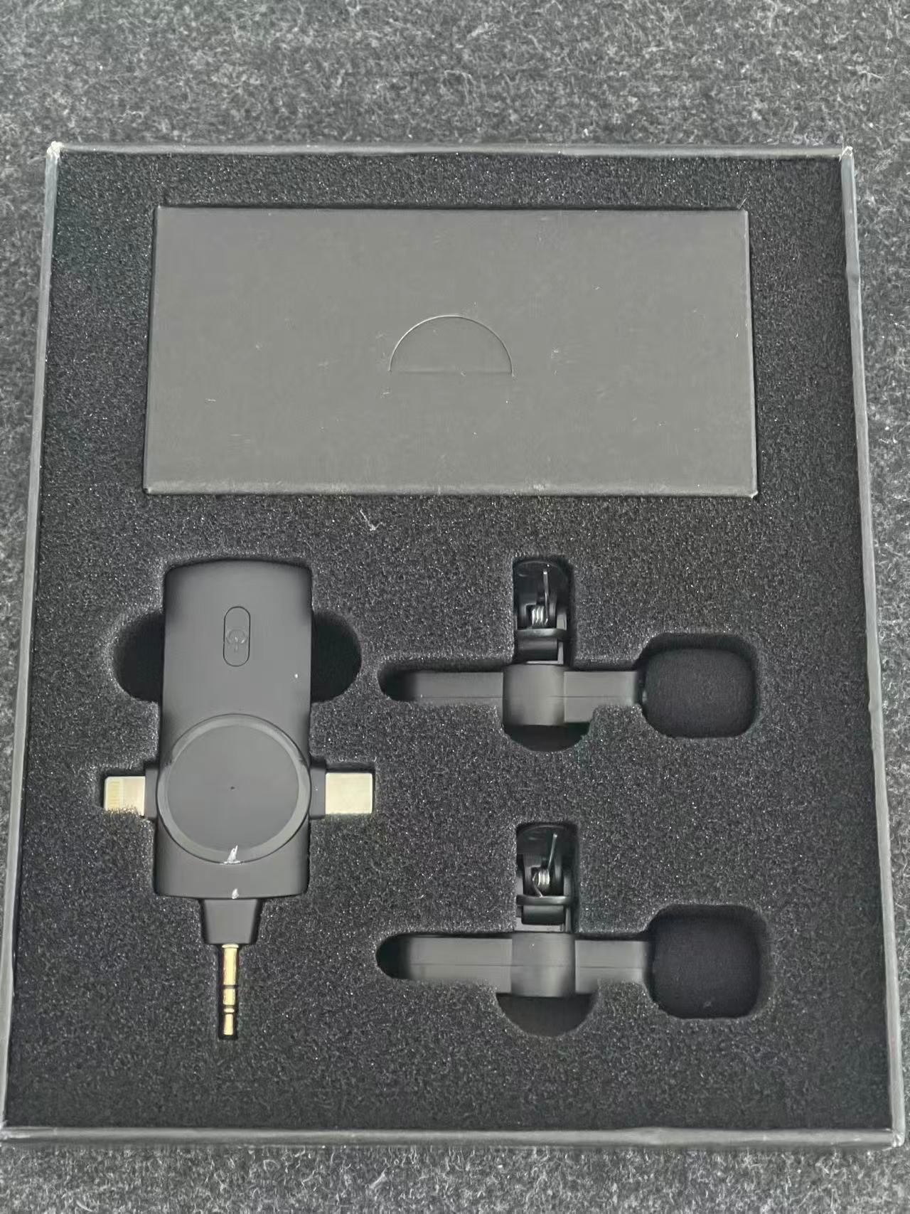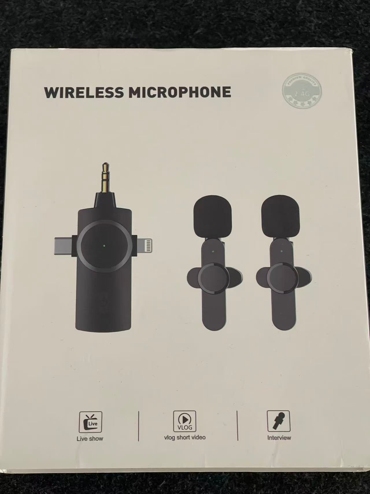 Dual wireless clip-on microphone set, good for vlog, interview, live streaming and video recording.