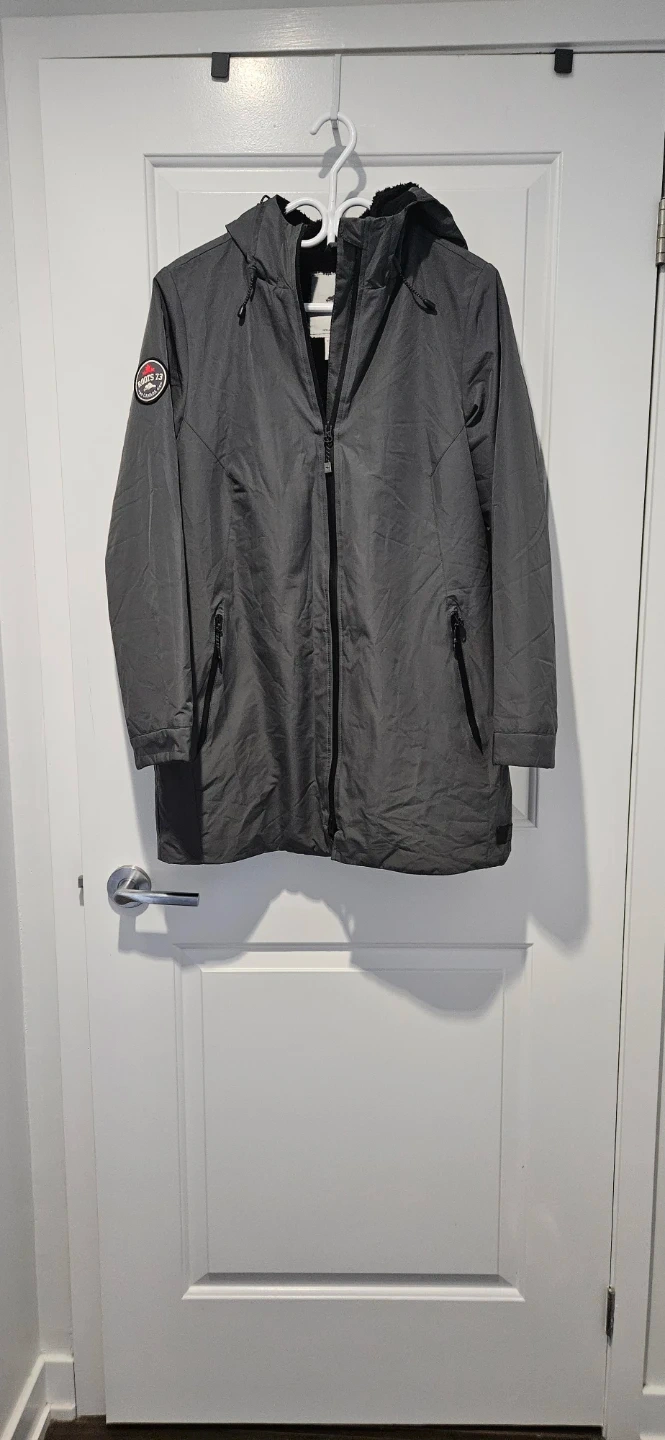 Stylish Roots 73 women's grey jacket with a hoodie in size medium. It's in fantastic condition and incredibly warm. Perfect for winter and for rainy days.