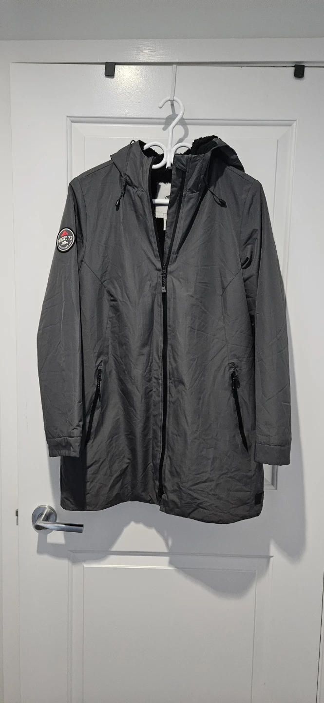 Stylish Roots 73 women's grey jacket with a hoodie in size medium. It's in fantastic condition and incredibly warm. Perfect for winter and for rainy days.