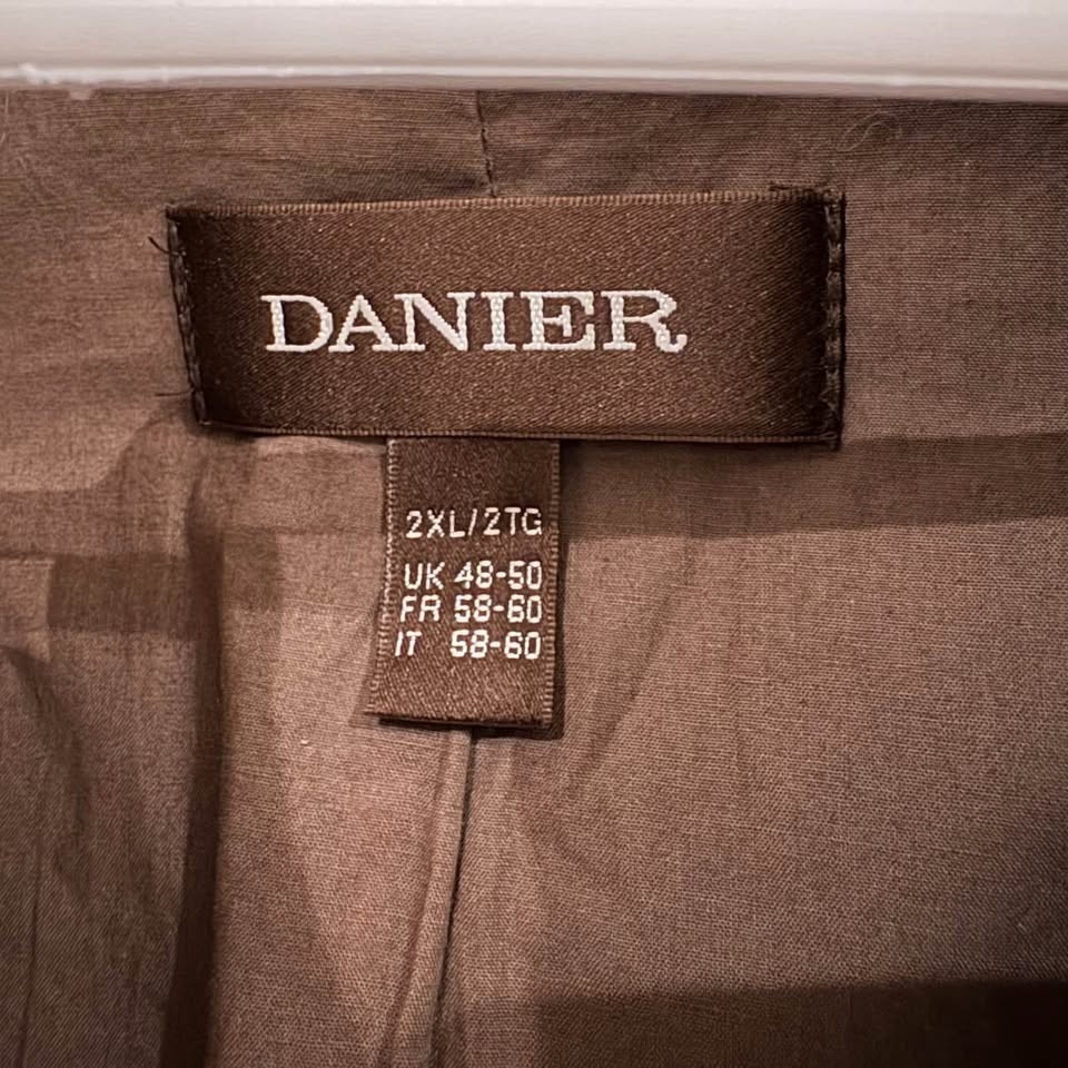 Classic Danier brown leather jacket. Ideal for layering. Sleek and timeless design. Minor scrapes on leather, otherwise great condition, no tears. Lots of pockets on the inside. Men's 2XL. Pit to pit 26".