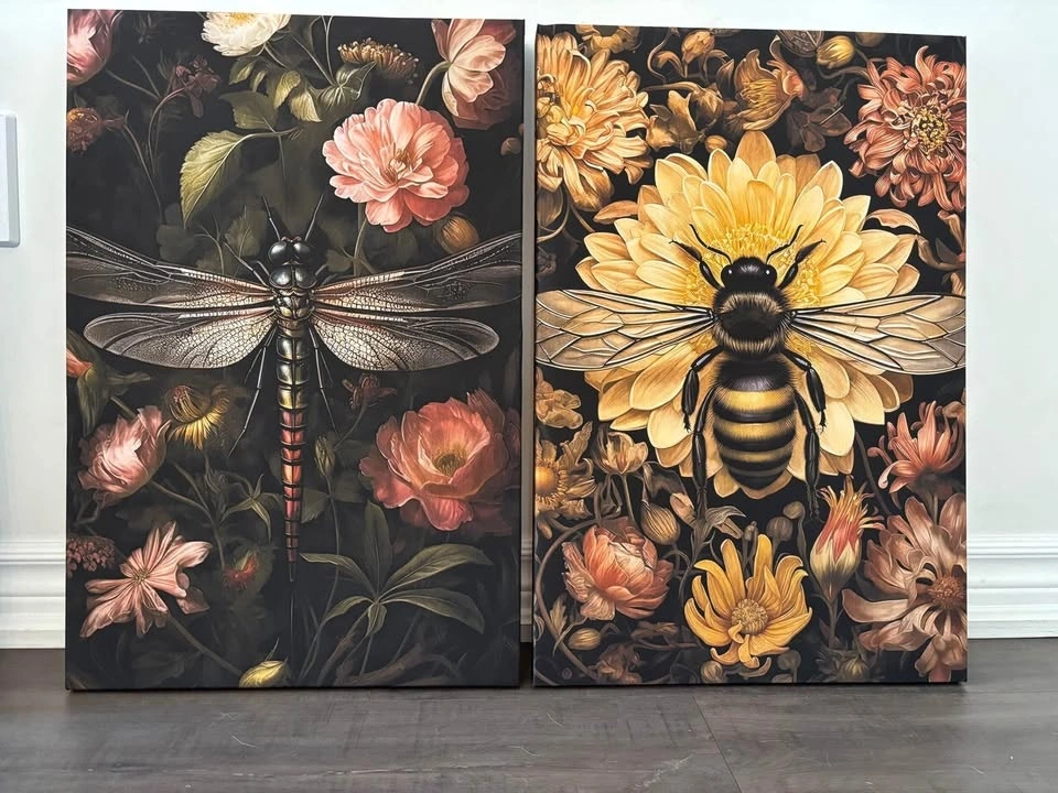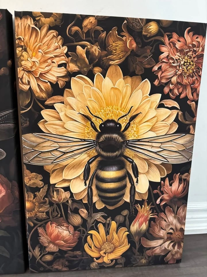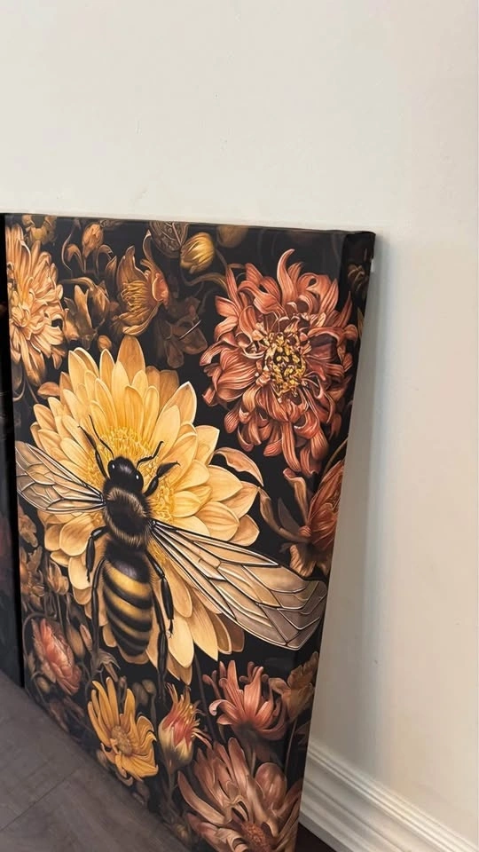 Beautiful floral bee print on canvas, framed onto a 23.6”x15.7”X1.5” wooden frame. Lightweight and ready to hang. Pick up in North Bowmanville near Northglen Blvd.