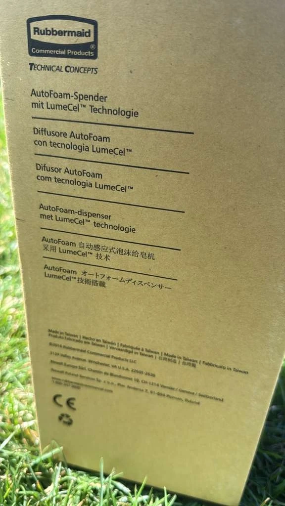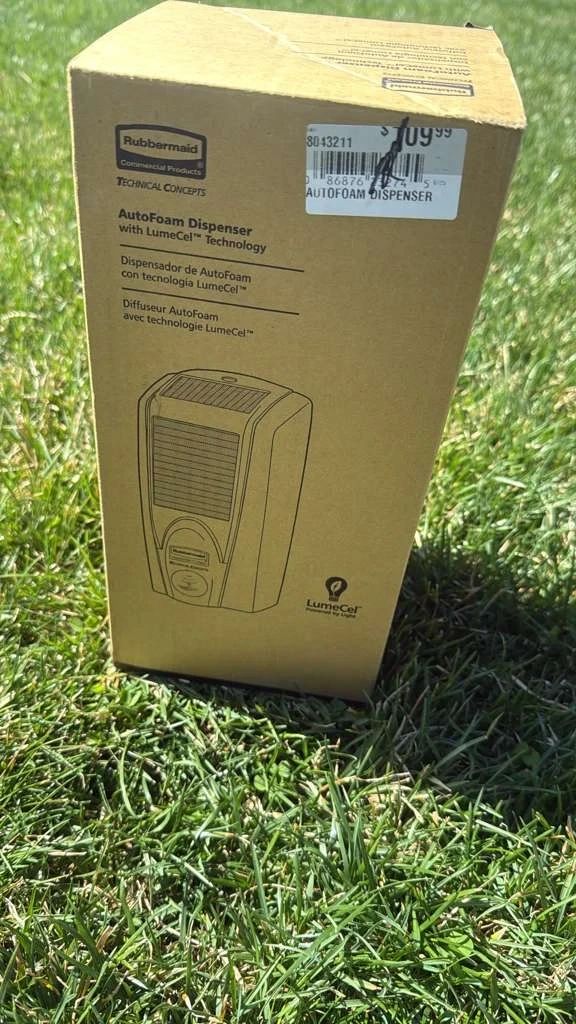 This is a Rubbermaid AutoFoam dispenser with LumeCel Technology. It's designed for commercial use. Dispenser for AutoFoam with LumeCel Technology.