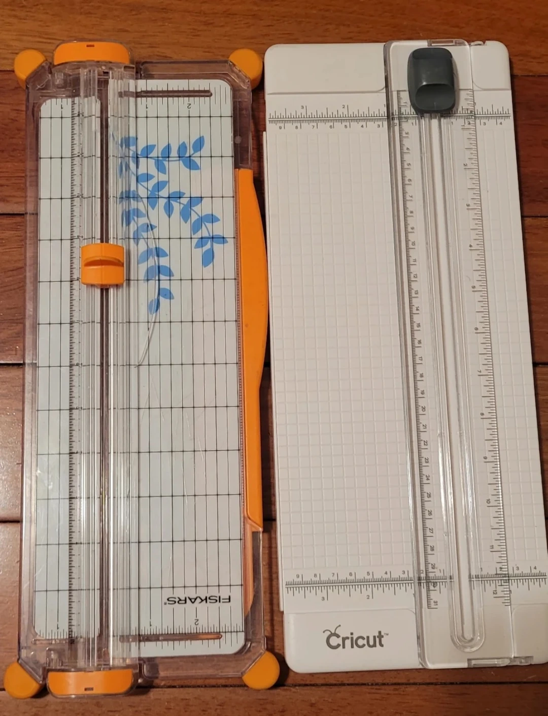 This bundle includes a Cricut Joy cutting machine, a variety of Cricut Infusible Ink markers, Opaque Gel Pens, and a set of essential crafting tools. Also included are two paper trimmers, one by Fiskars. It's a great starter kit for all your crafting projects!