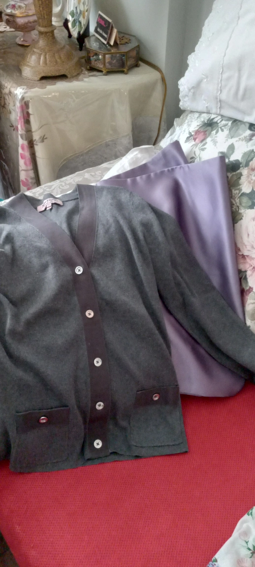 This is a Juicy Couture grey cardigan sweater with button closures and pockets. It's made of a soft material, perfect for layering. This sweater would be great for a casual day out! $8