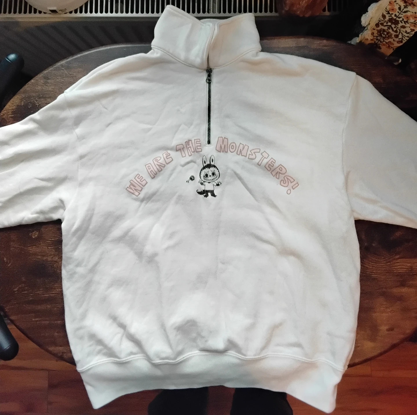 Buy & SellUniqlo x UT Half Zip SweatshirtUniqlo x UT Half Zip Sweatshirt$5Uniqlo UT half zip sweatshirt with "WE ARE THE MONSTERS!" graphic & labubu icon. Size S/P. Cotton blend material. Great for casual wear!SizesBrandUniqloWHERE TO MEETCheck LocationView MapSELLERverifiedhewittYonge St.Clair73768 reviews0 chats·0 favorites·20 viewsSEND CHAT TO SELLERHi hewitt! I’m interested in your listing.Hi hewitt! I’m interested in your listing.Get the Karrot app to chatSign In to chat