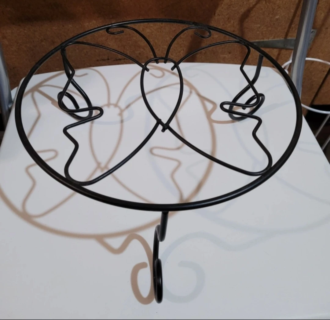 5 items, 2 galvanized metal planters, one with a handle and rope accents, and the other featuring a "Flowers & Garden" plaque, 2 red flower pots, and 1 black metal butterfly-shaped plant stand. Ideal for small plants or decorative displays. Great for your garden or windowsill. Happy planting!