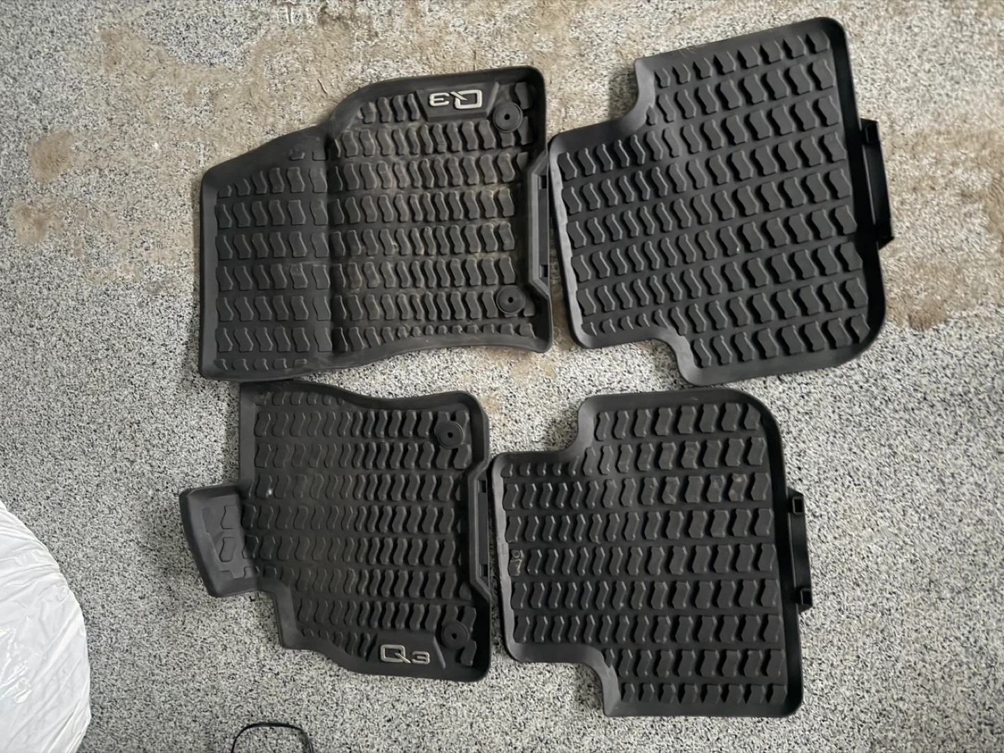Set of four black rubber floor mats for an Audi Q3. Features a deep tread pattern for excellent dirt and water trapping. These mats help protect your vehicle's carpeting from the elements. Suitable for all-weather use.