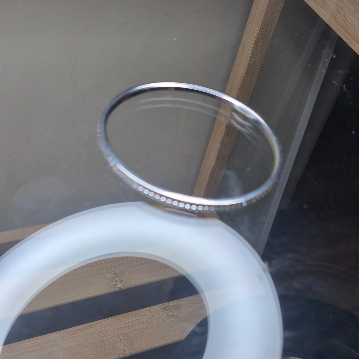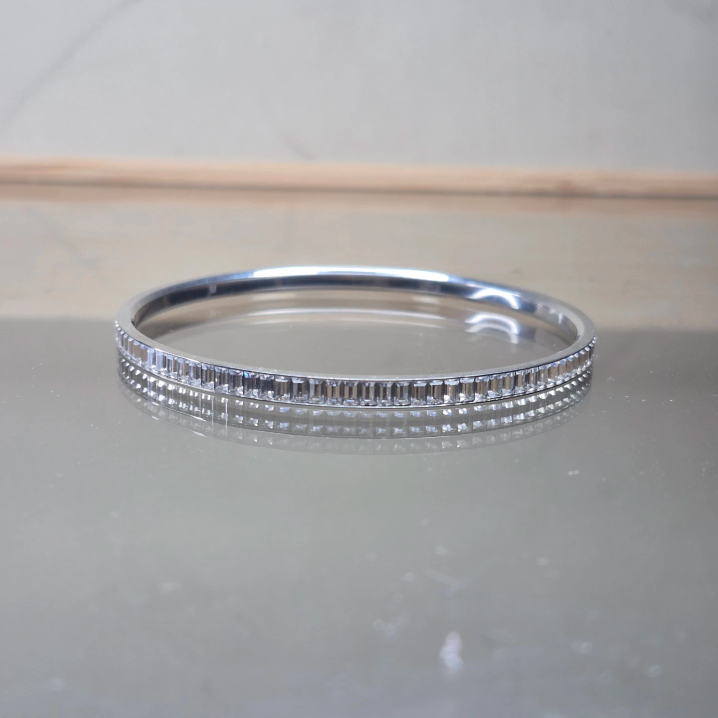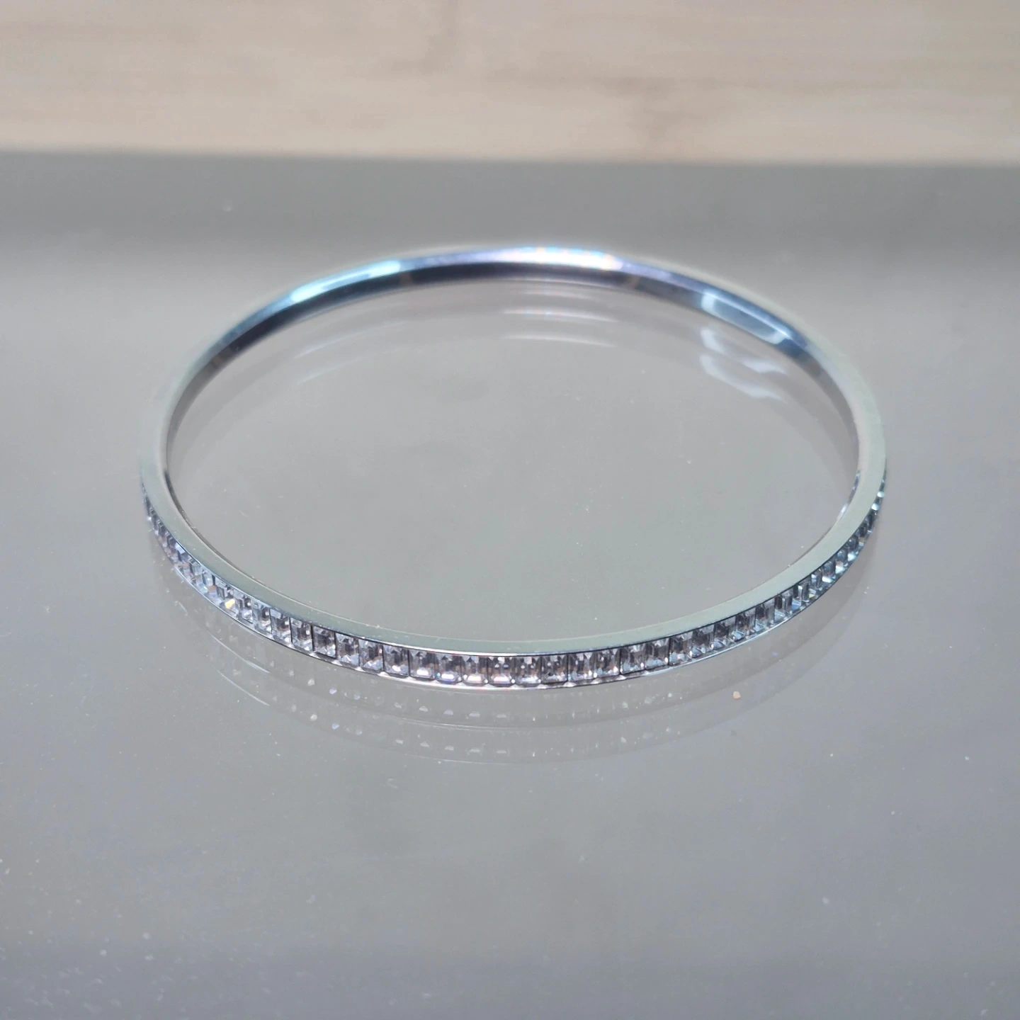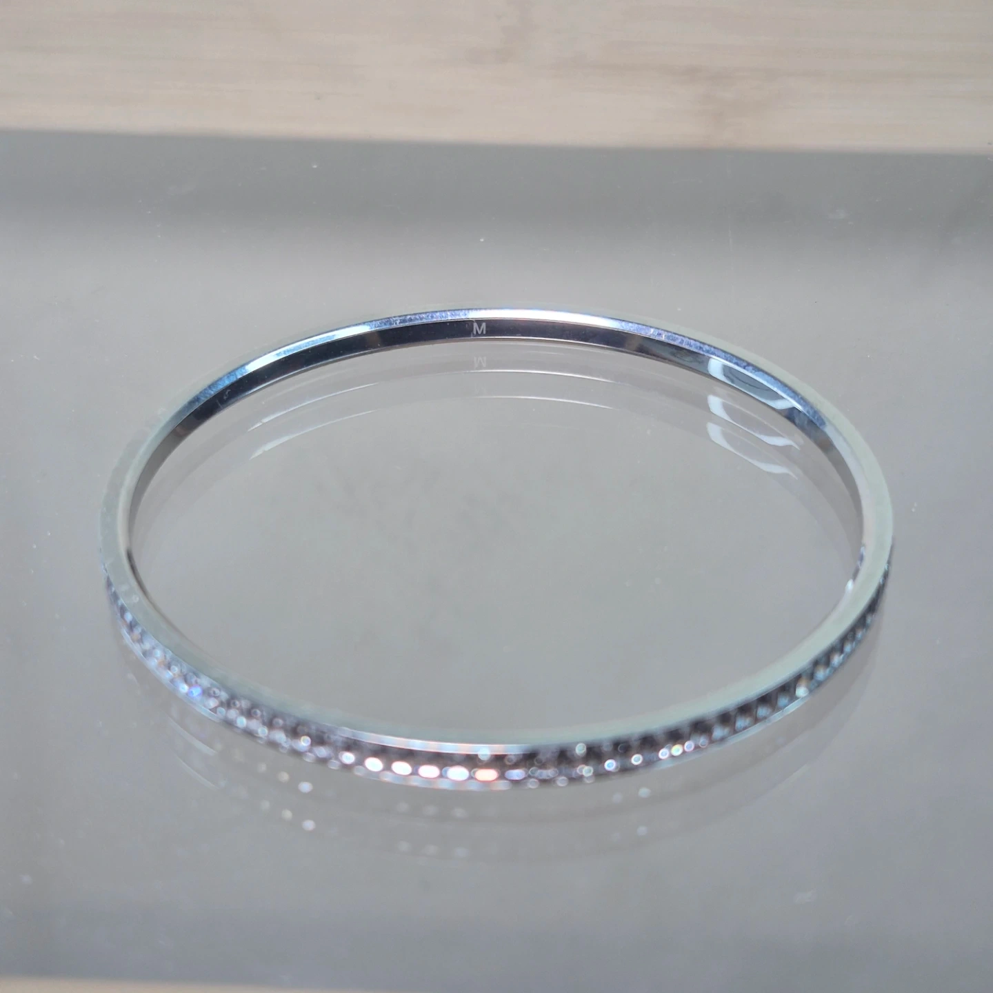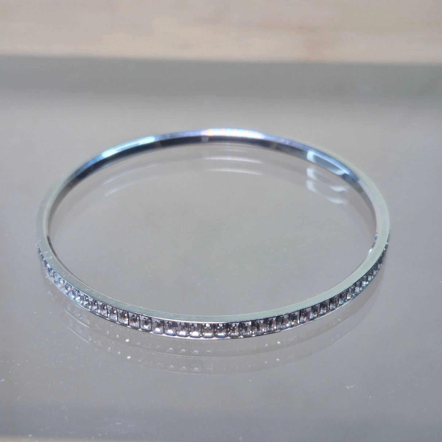 Silver-tone Bangle with Rhinestones - Size M