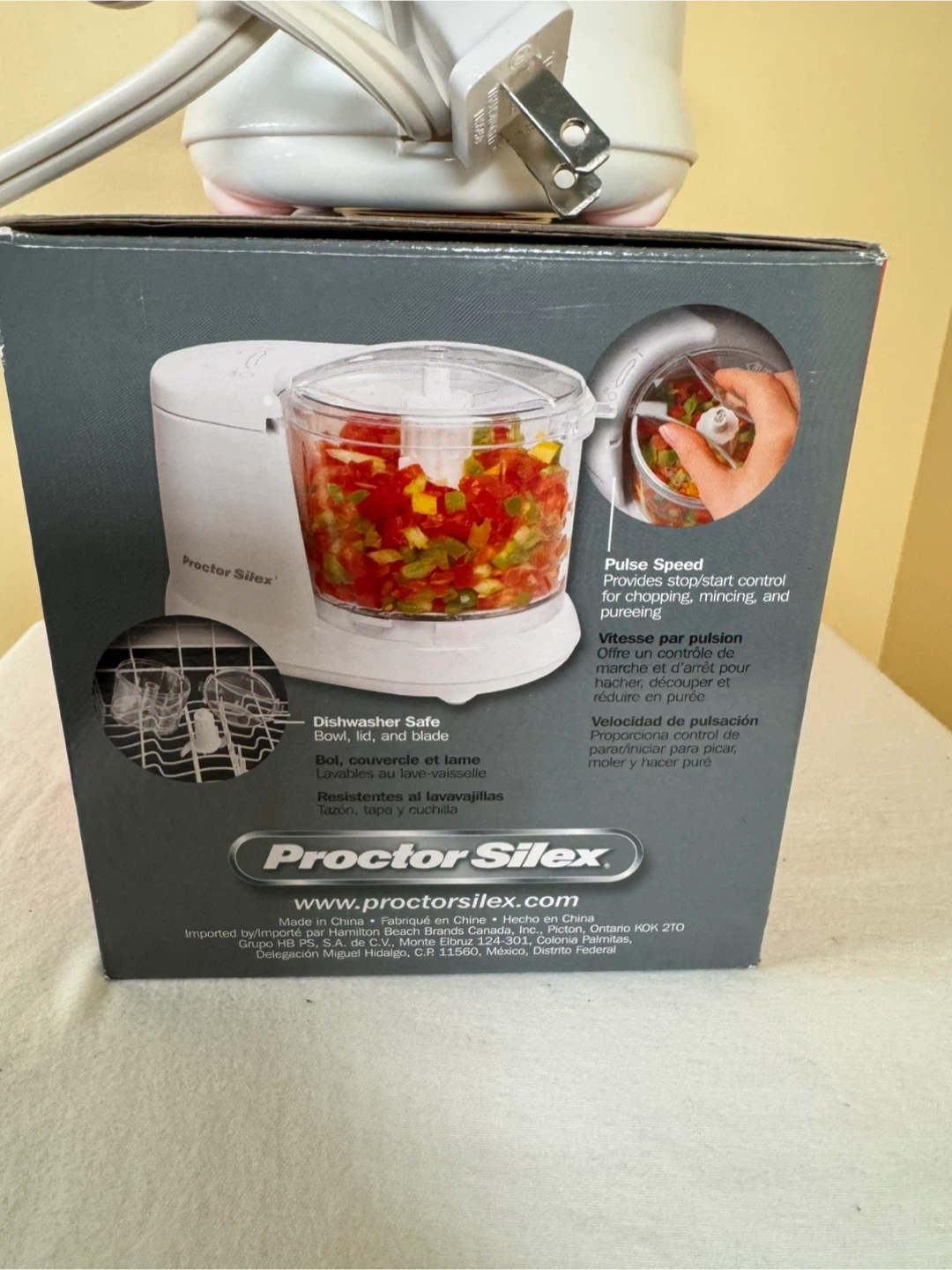 This Proctor Silex food chopper is perfect for quick chopping, mincing, and pureeing. It's dishwasher safe for easy cleanup. The bowl, lid, and blade are all dishwasher safe. 1 1/2 cup capacity.