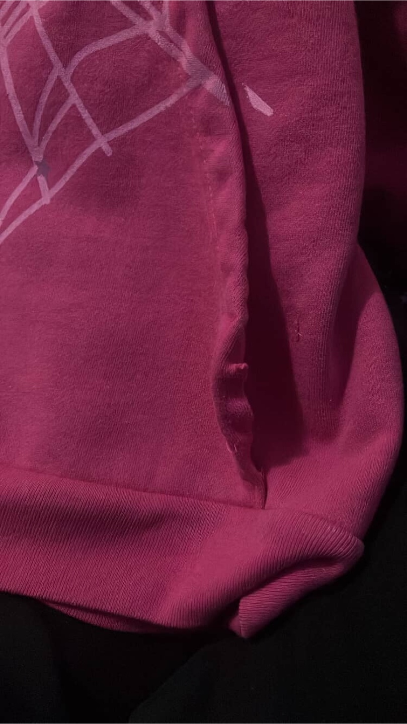 Selling a SP5DER pink hoodie in size M.There is a small tear on the bottom it’s easy you could restich it