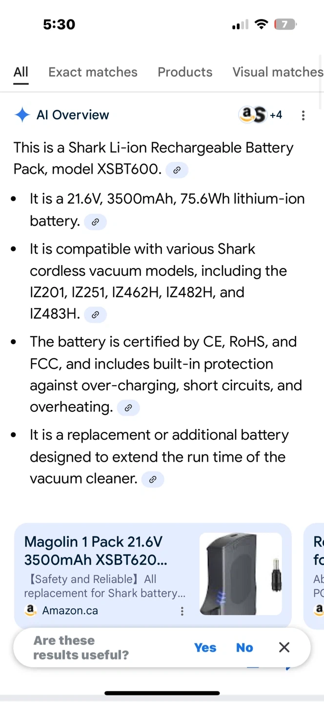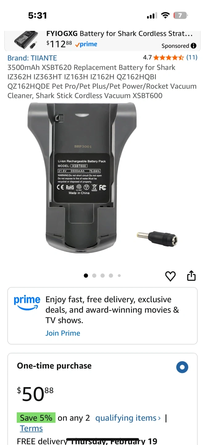 This TIANTE rechargeable battery pack is for Shark cordless vacuums. It's a 21.6V, 3500mAh lithium-ion battery. Includes one battery and a charging adapter.