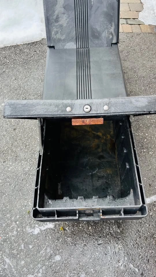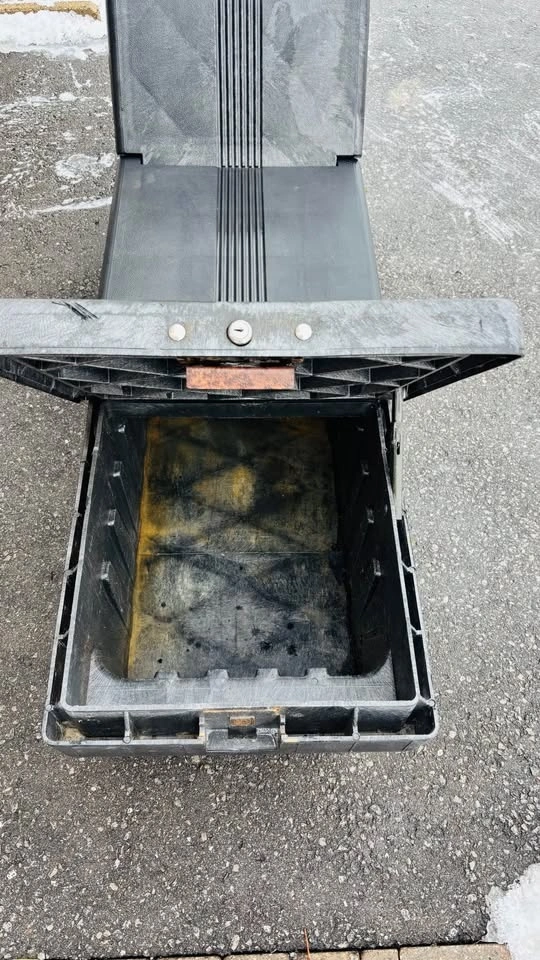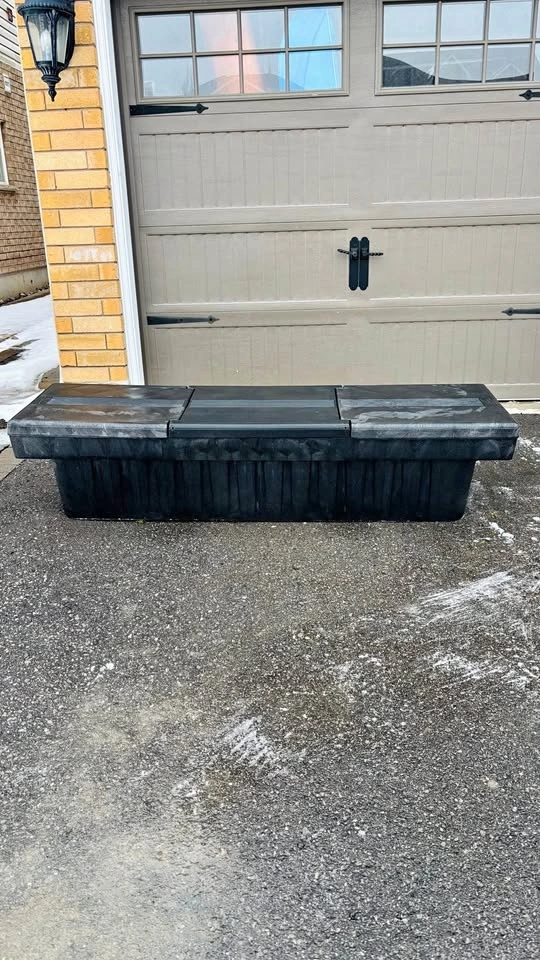 Extremely durable rigid heavy plastic construction. Measures 71” long on top and 59” long on the bottom. Includes the removable tool tray as seen in photos. Overall the box is in great shape. No cracks or holes or anything like that. The struts on both compartment doors work perfectly. The doors will stand open, and will close easily. There are locks on both compartment doors but I don’t have the key. Perhaps you could get a key made or rekey the locks if locking is important to you. This came from an estate and I don’t know what make/model of truck it was in. Should be a fairly universal fit. Check the measurements provided above with your truck bed. Pickup in Bowmanville.