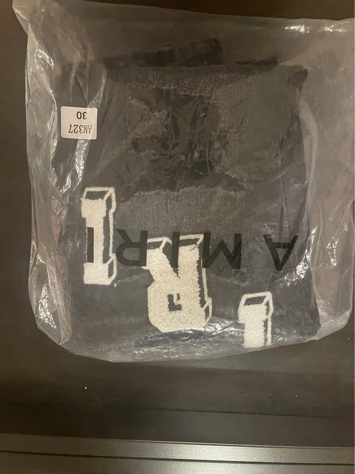 Selling a pair of Amiri jeans, size 30. Never worn, brand new condition. Size: 30, Color: Black, Condition: 10/10 (Never worn), Includes: Original tags + Amiri bag, Slim fit, distressed design. Located in Pickering near Brock Road.