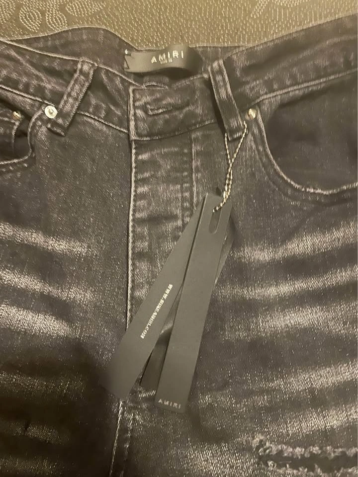 Selling a pair of Amiri jeans, size 30. Never worn, brand new condition. Size: 30, Color: Black, Condition: 10/10 (Never worn), Includes: Original tags + Amiri bag, Slim fit, distressed design. Located in Pickering near Brock Road.