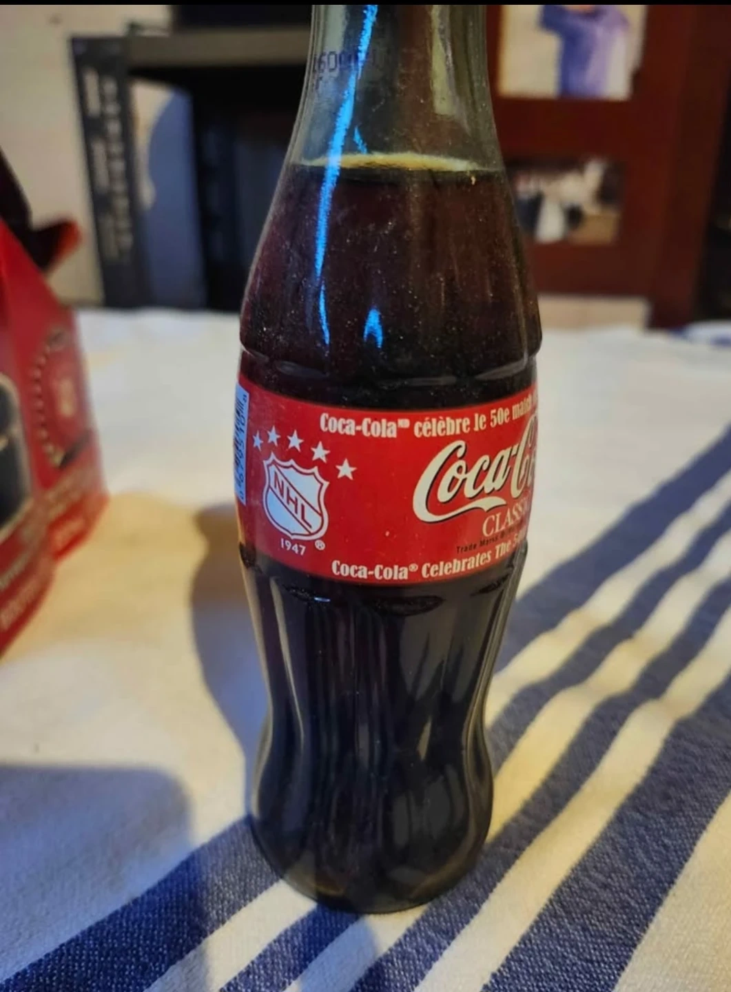 Celebrate the 50th NHL All-Star Game with these mini Coca-Cola Classic bottles! This special edition set features unique labelling commemorating the event. Original glass bottles.