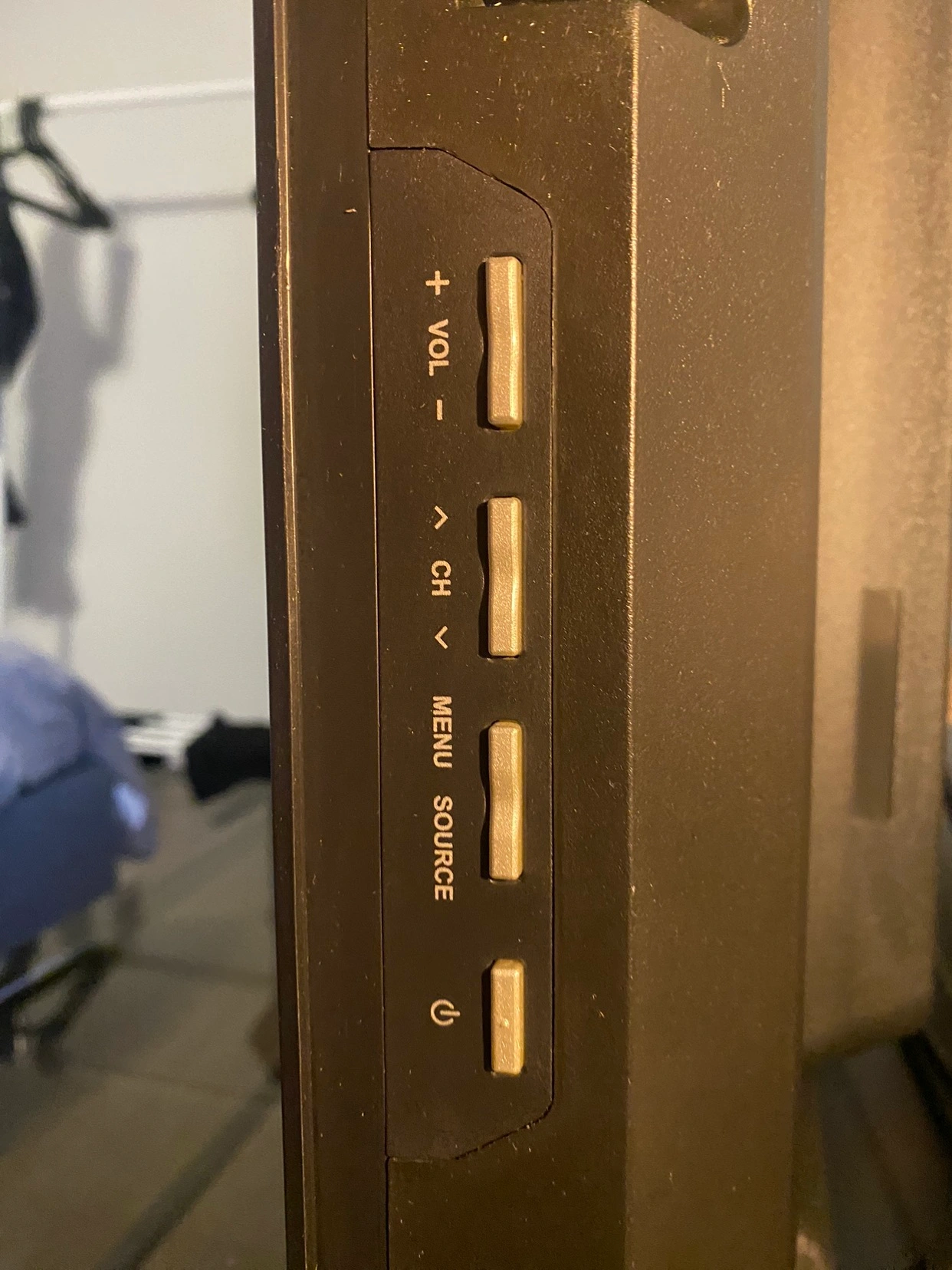 The power button needs some patience because the button moved little bit and also there are no remote control but the tv is really good and it's work with no problem and also it have a good speaker