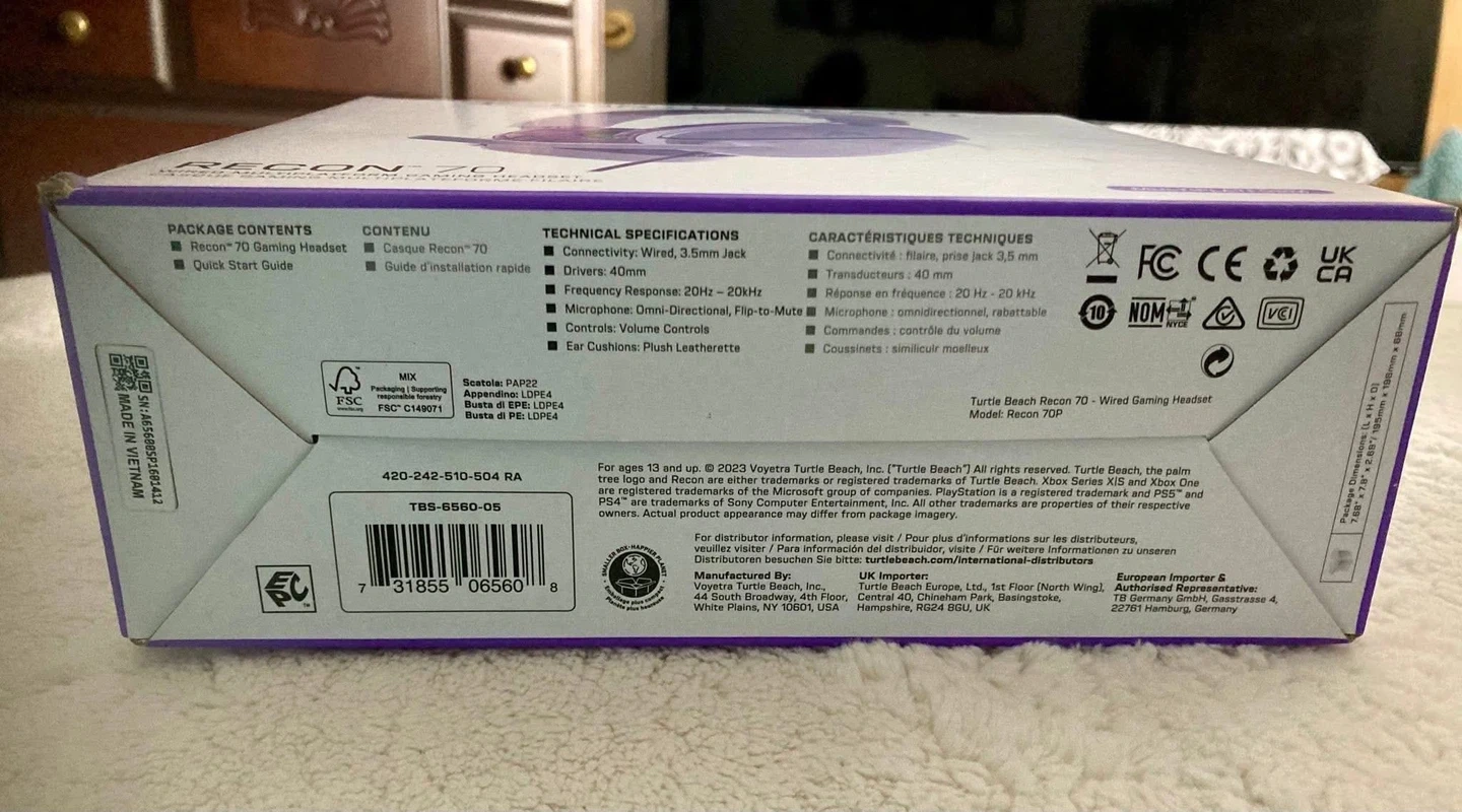 Get ready to elevate your gaming experience with these brand new Turtle Beach Recon 70 Multiplatform Gaming Headphones in lavender! No need to worry about compatibility; they work seamlessly with various platforms. Please see the specifications below: