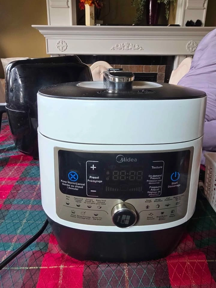 Midea electric pressure cooker, 6L capacity (model MY-SS6062). Works perfectly and is in great condition. Ideal for fast, easy meals — pressure cook, slow cook, rice, soups, and more. Large 6L capacity, multiple cooking functions, clean and well maintained, reliable and easy to use. Pickup: Surrey, near 148th St & 69th Ave. Message if interested!
