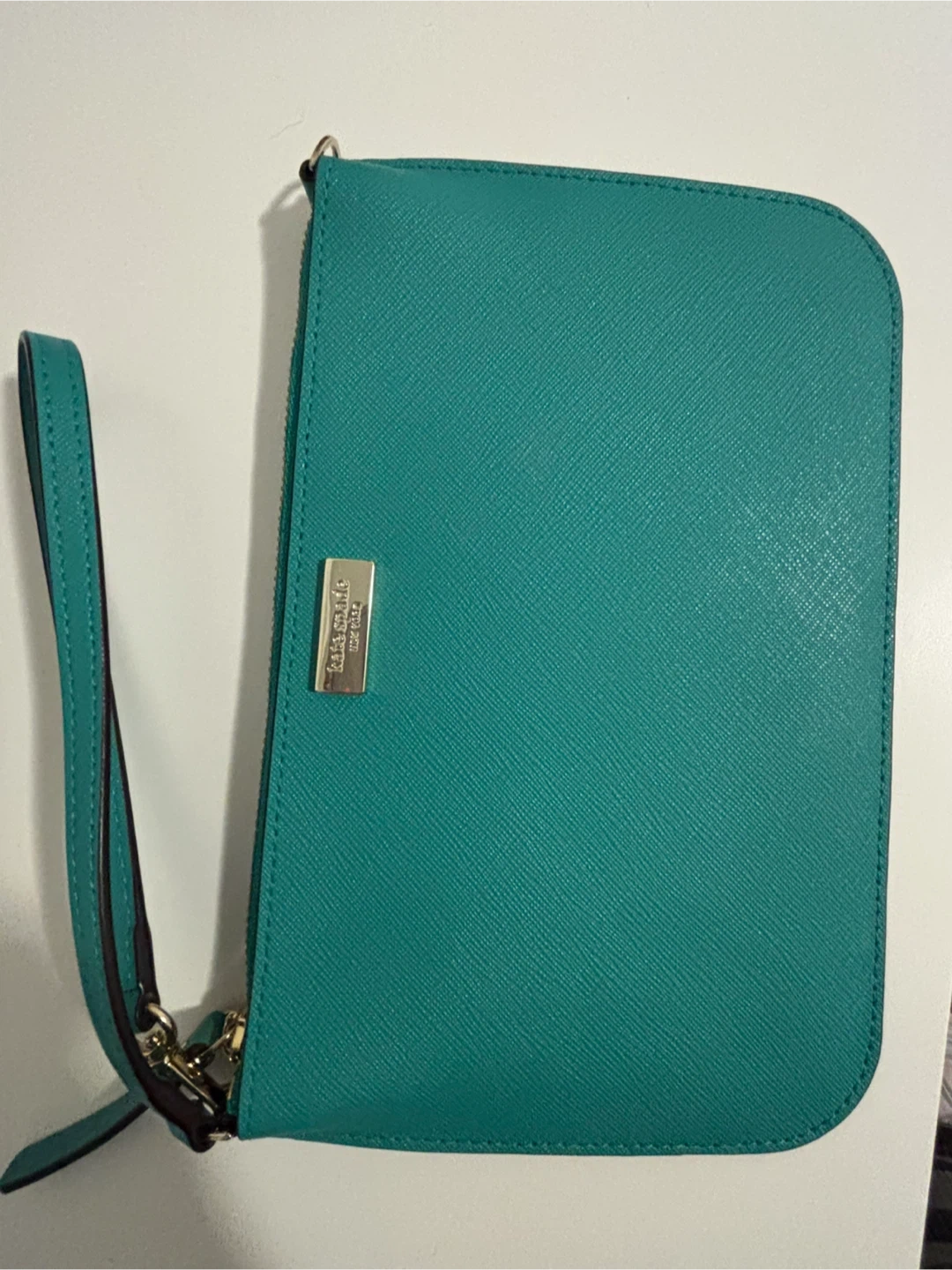 Selling a Kate Spade wristlet in a lovely teal colour. It's in great condition and perfect for carrying your essentials when you don't want to bring a big purse!