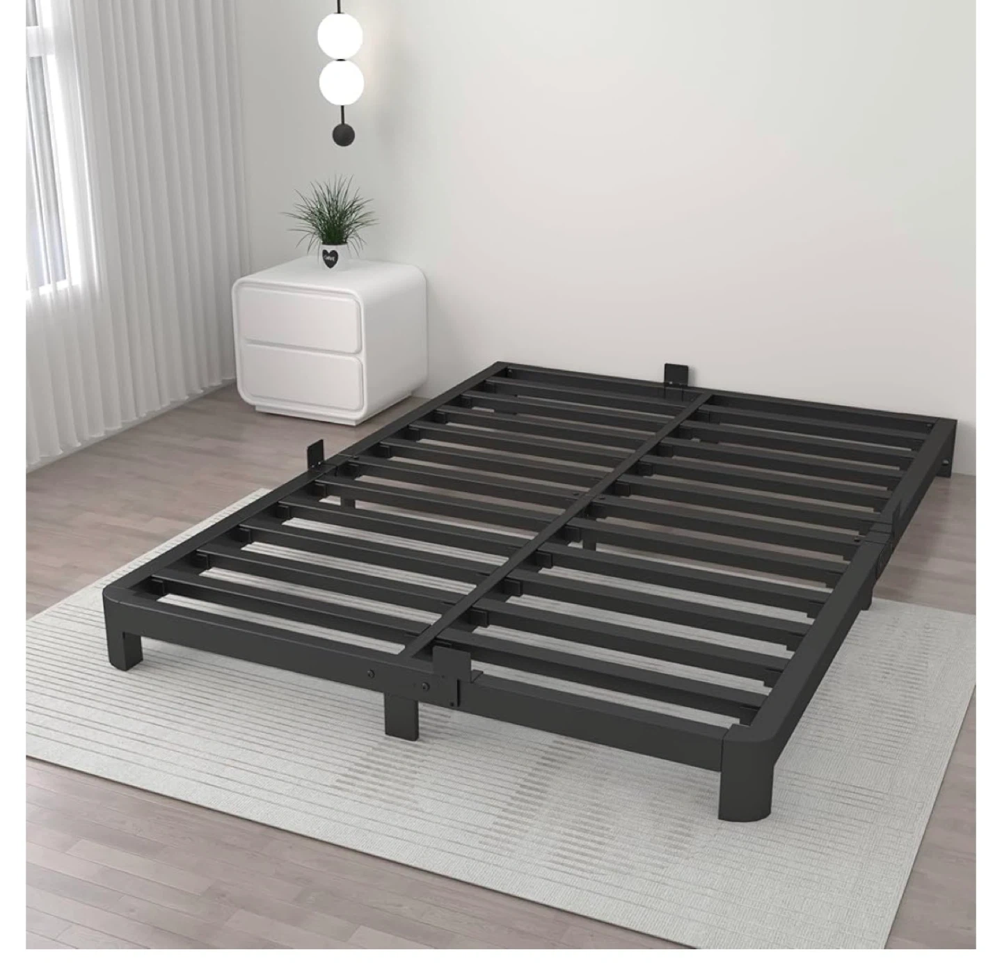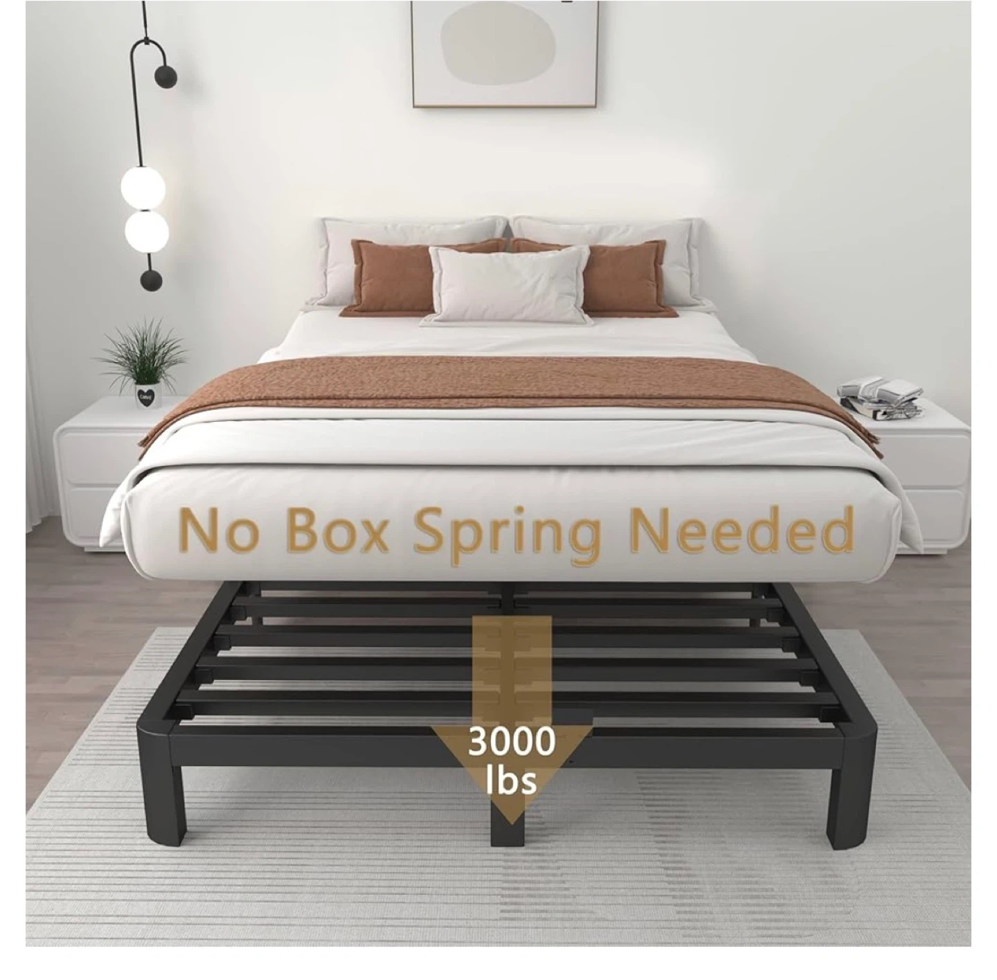This king size metal bed frame supports up to 3000 lbs and doesn't require a box spring. It's designed for mattresses up to 80" x 76". The frame has a low profile with 4" clearance.