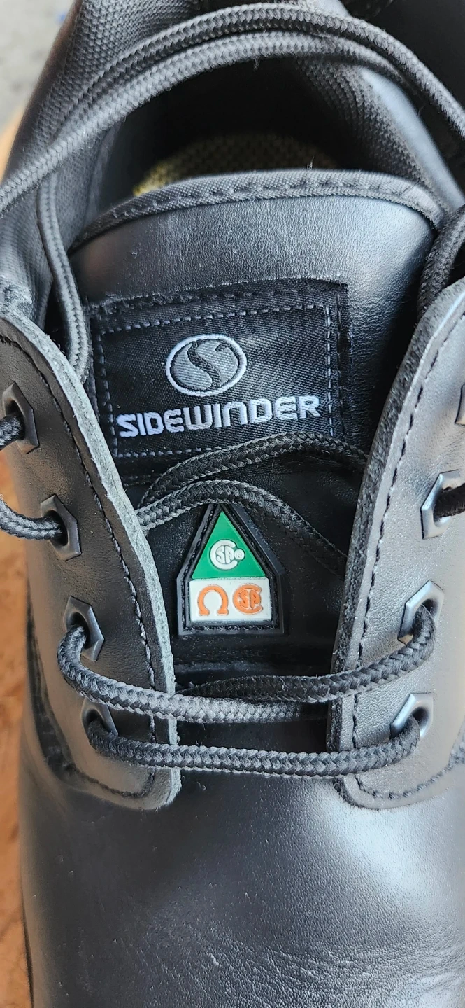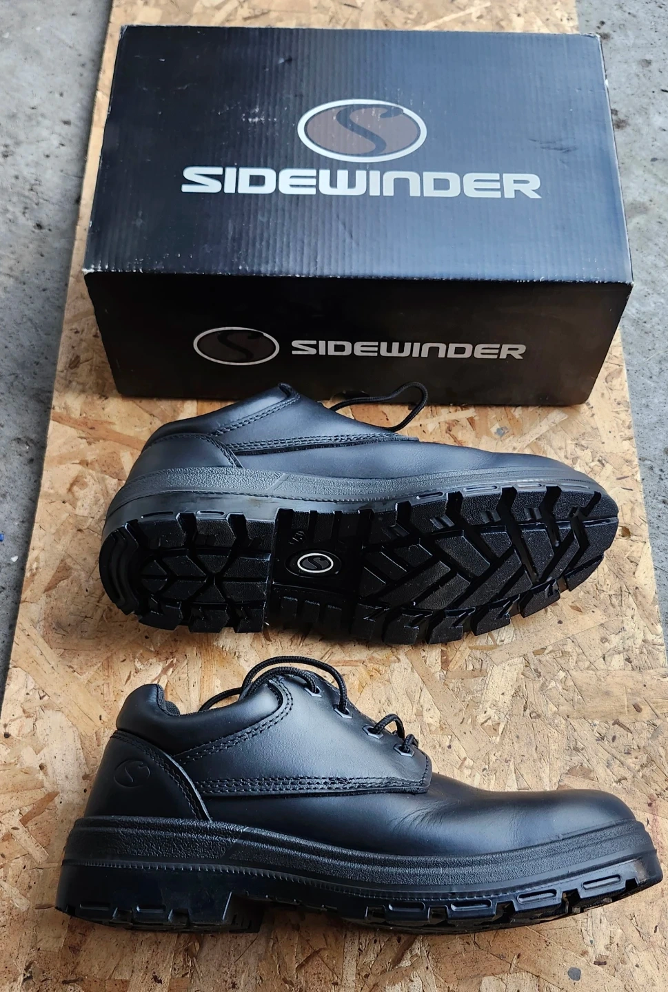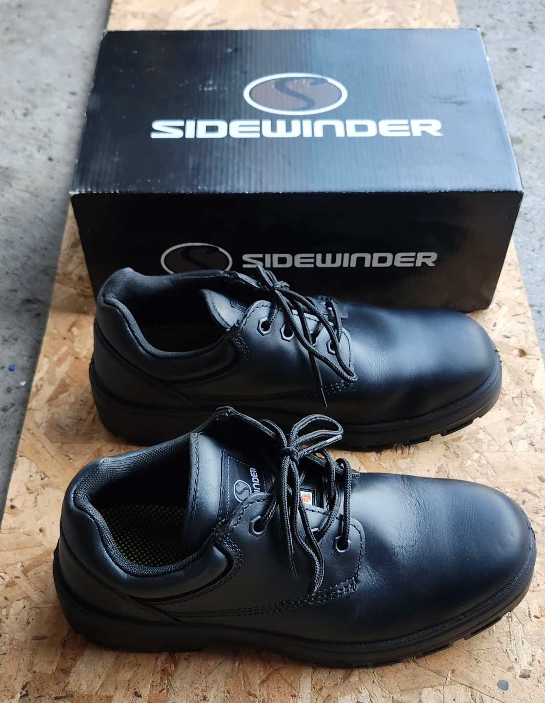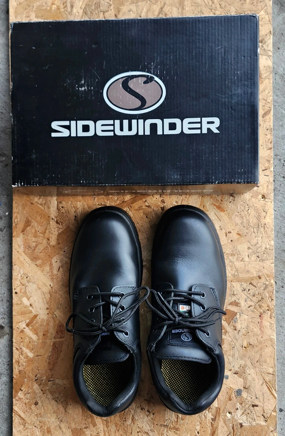 Step into safety with these Sidewinder black leather CSA-approved safety shoes, size 8.5 W designed to keep you protected on the job. These shoes have been used for a week but are in very good condition.