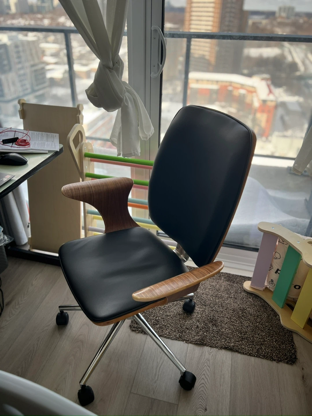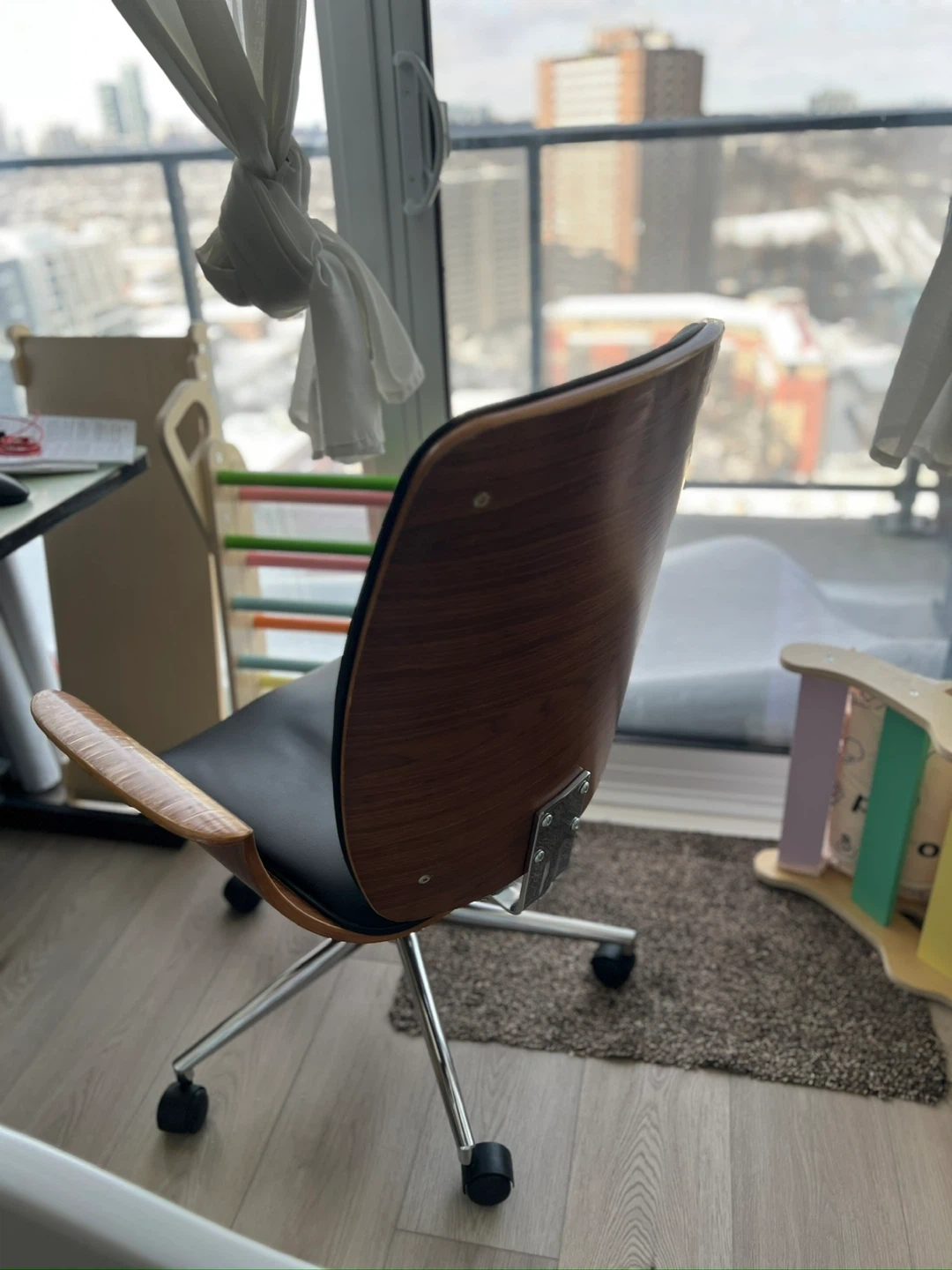 Orren Ellis Harada faux leather swiveling office chair that’s been well used and cared for.