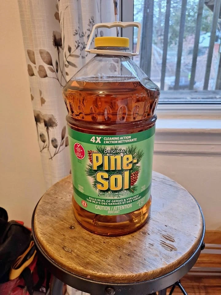 Large bottle of original Pine-Sol multi-surface cleaner. Has 4.25 L. Bought a while ago, but honestly I don't use enough to justify this large jug. Located by Sunnyside Avenue and Marion Street.