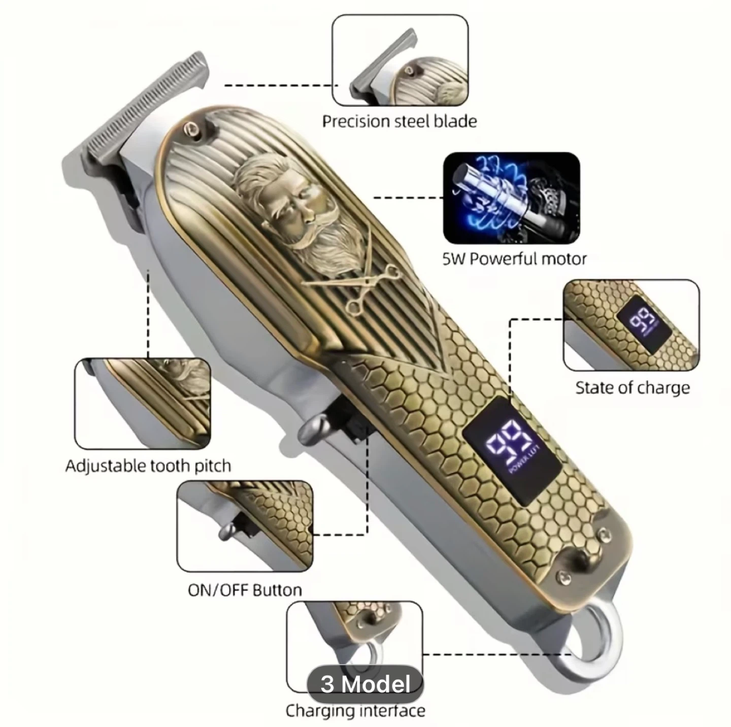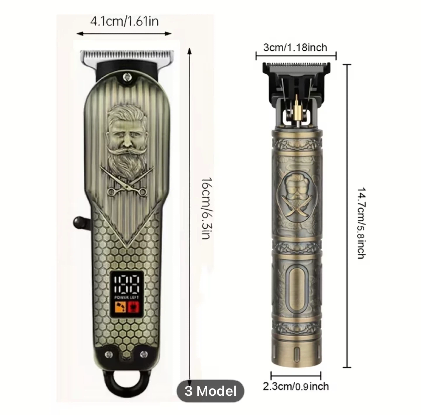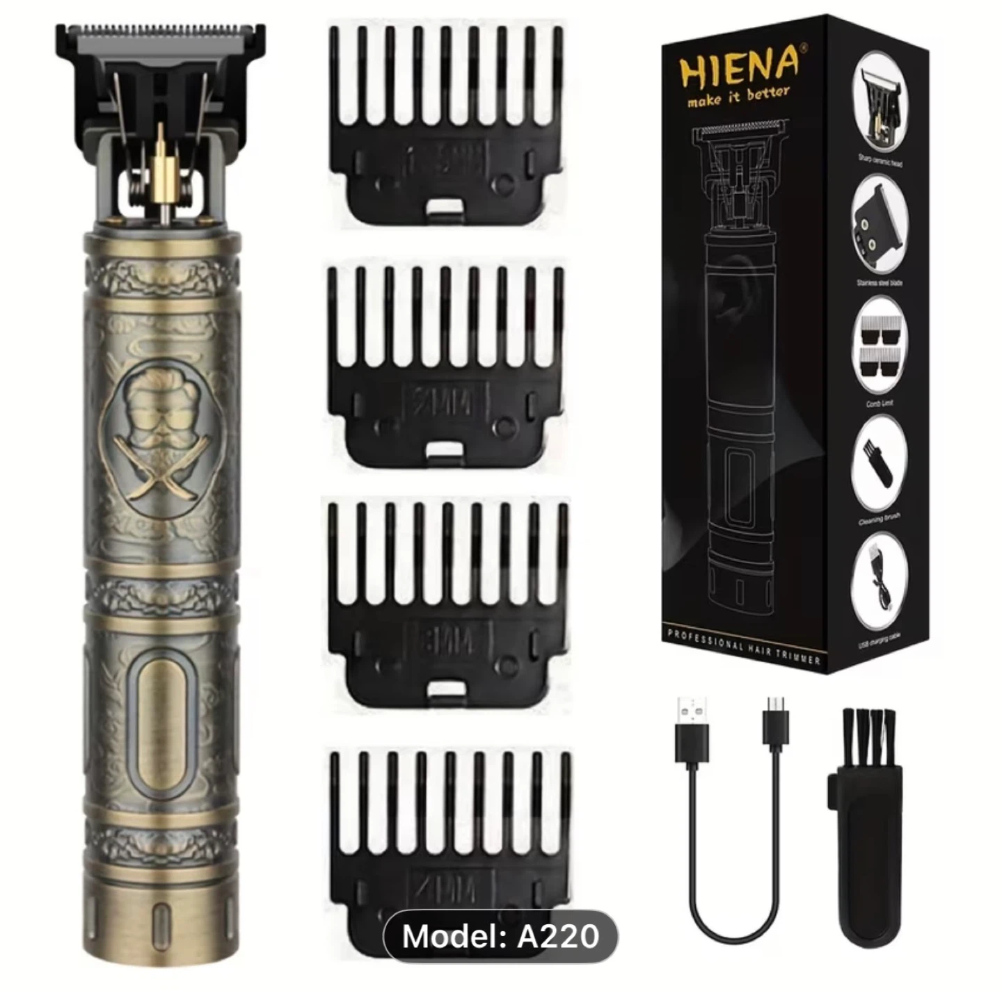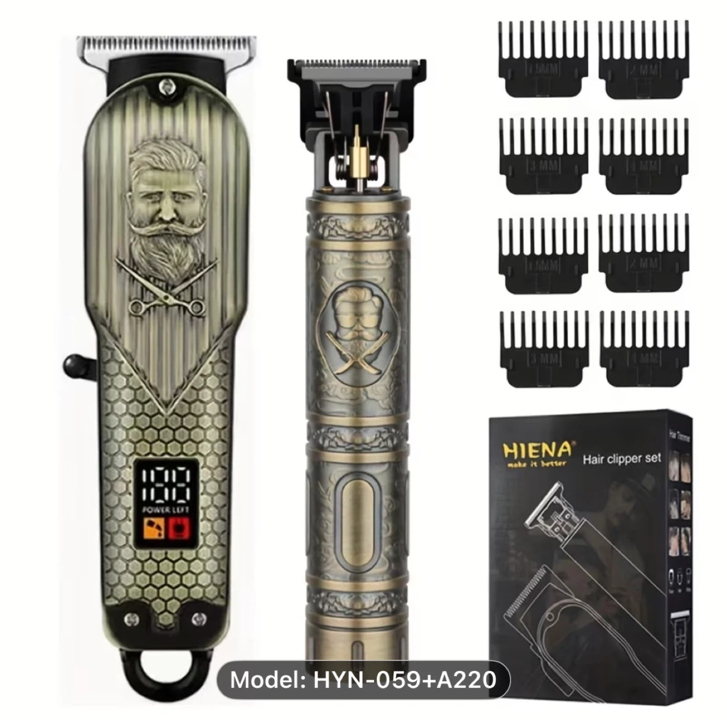 2pcs HIENA Men's Vintage Barber Pole USB- Beard & Mustache Trimmer Suitable for Home Use, USB- Trimmer, Ideal Gift for & Men