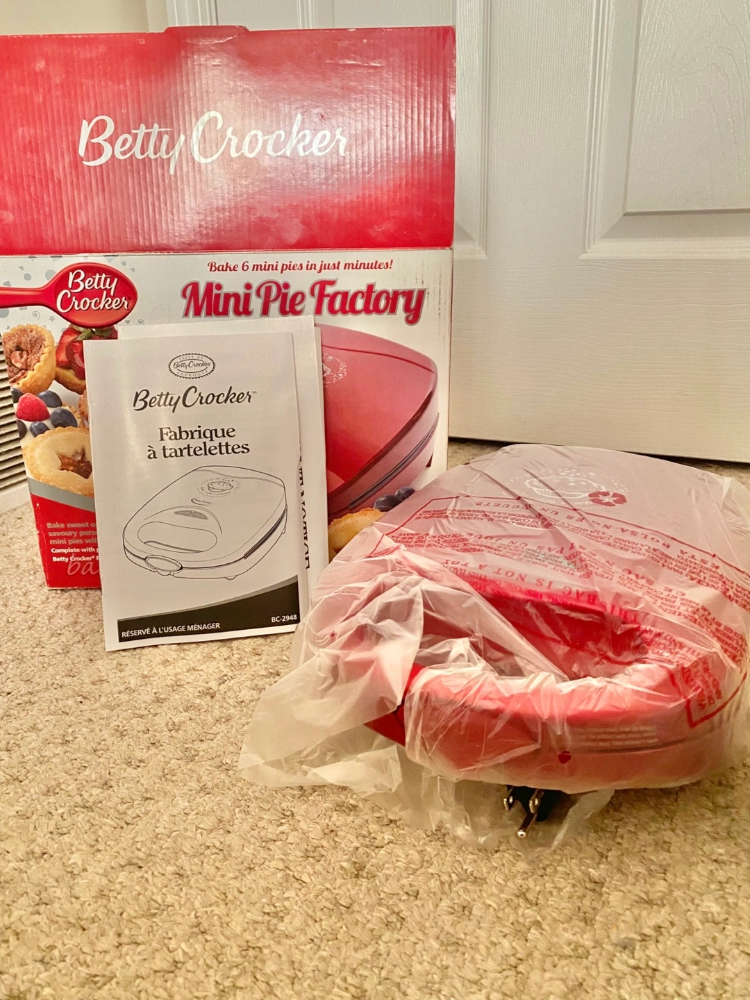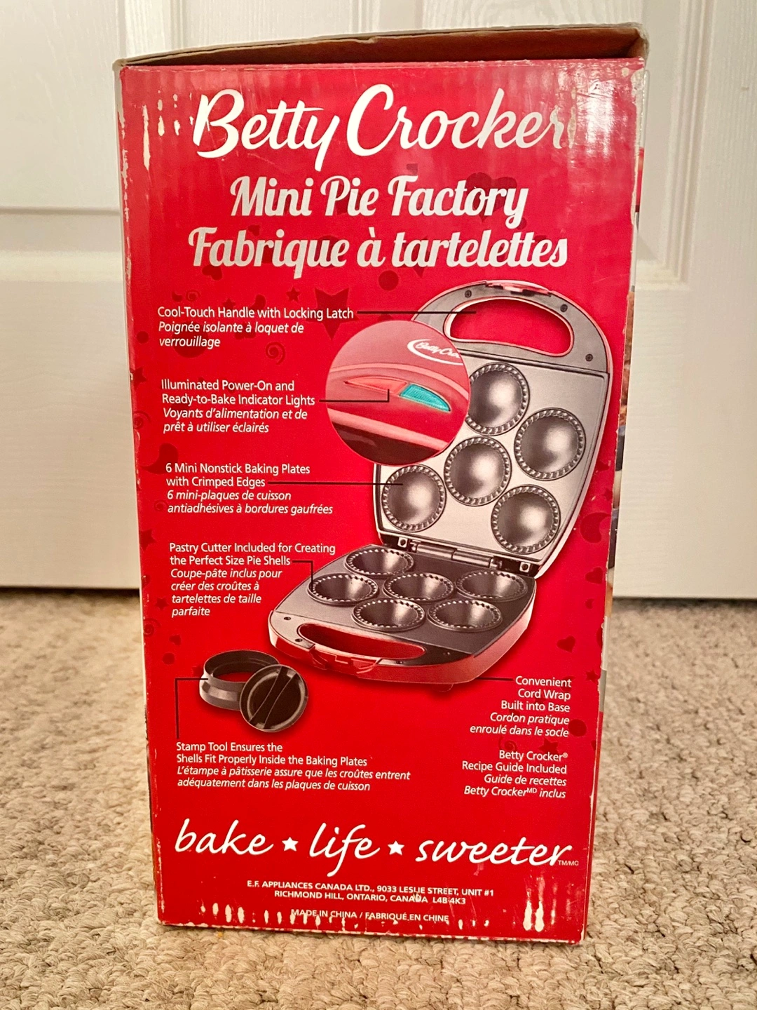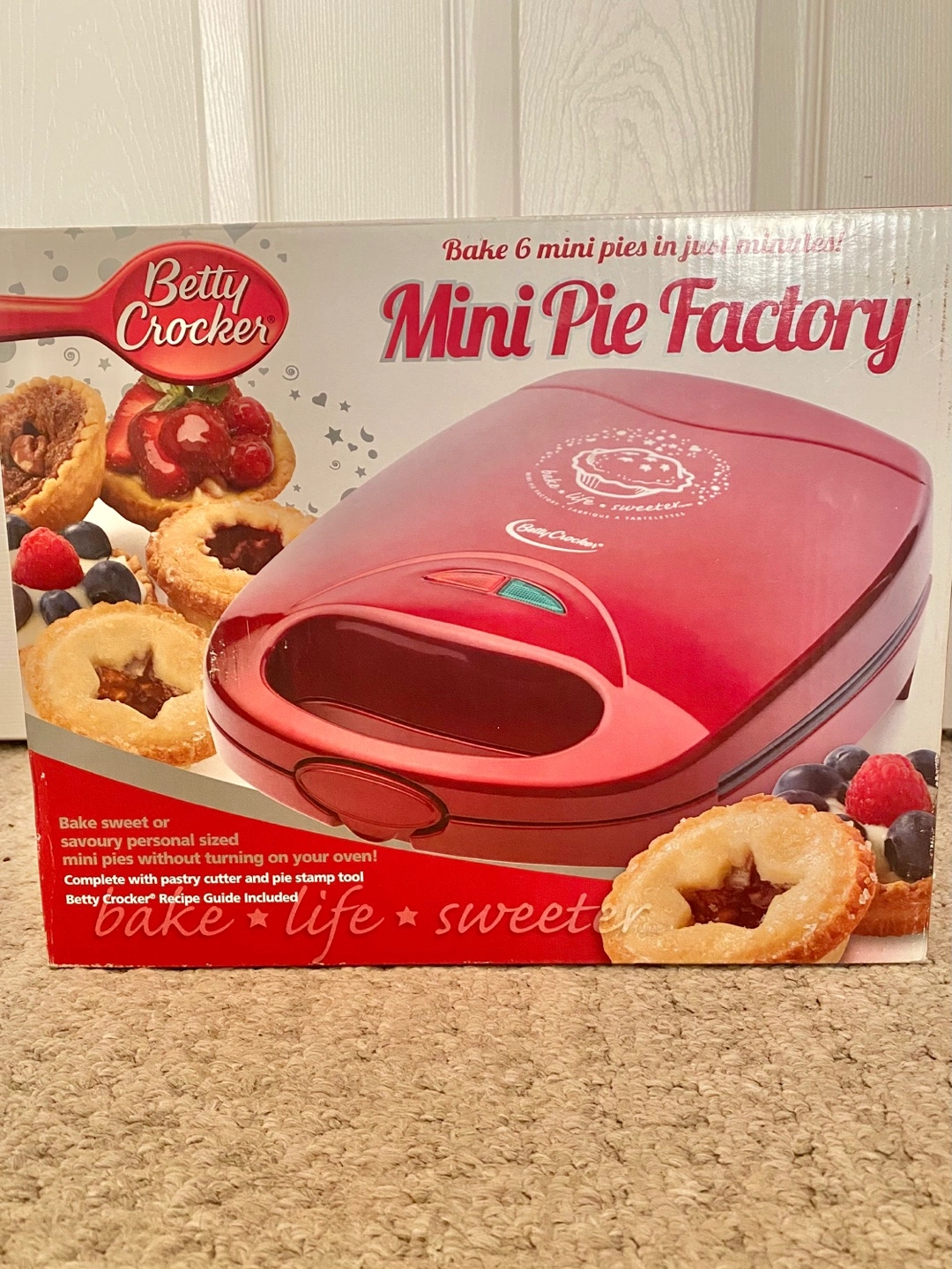 Red Betty Crocker mini pie maker. Makes six mini pies. Brand new in box, never used before