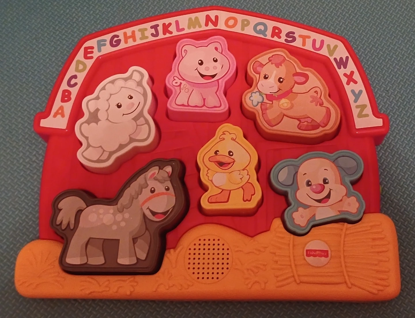 This Fisher-Price barnyard toy teaches children the alphabet and animal sounds. It includes colourful farm animal shapes to sort into their matching slots. It's made of durable plastic and designed for little hands.