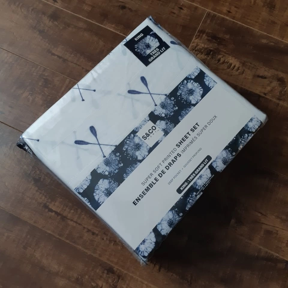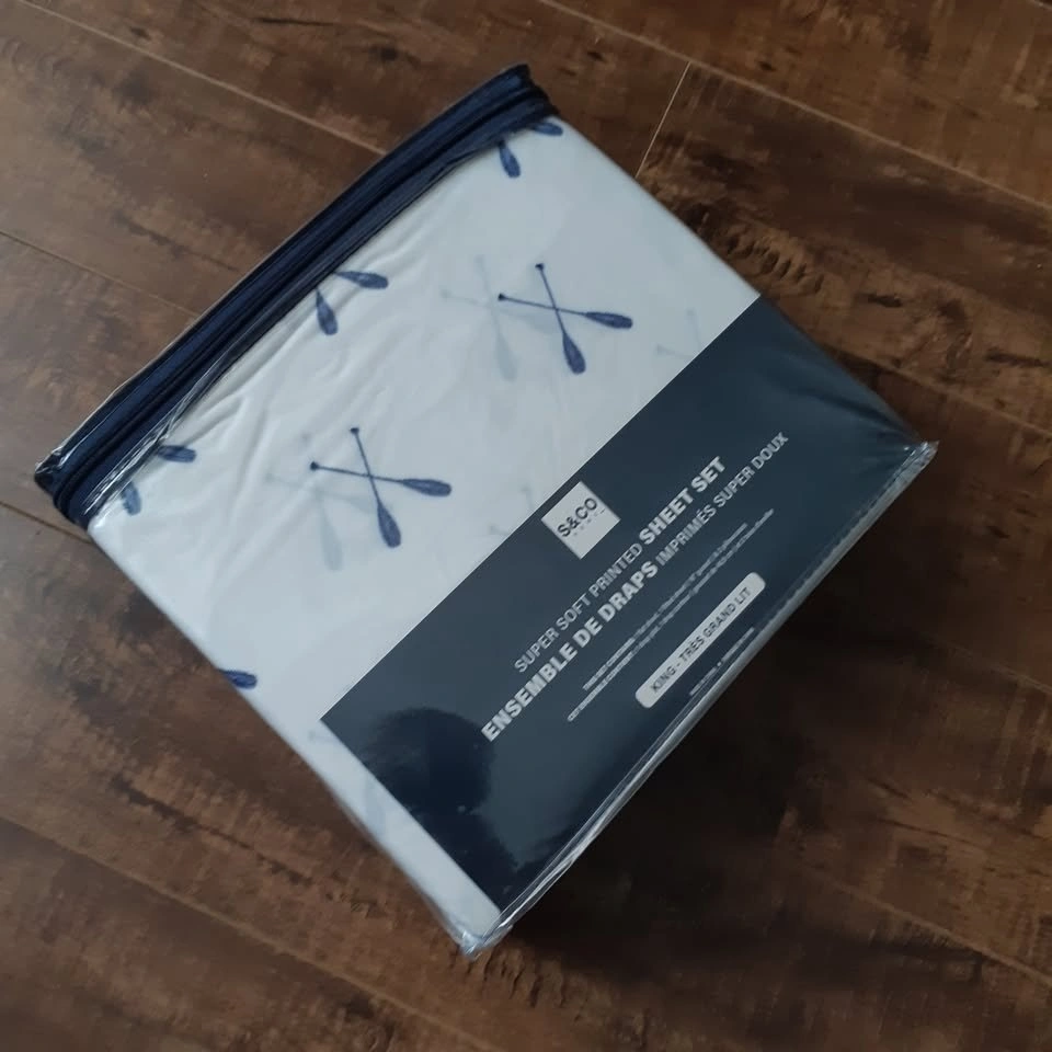 Brand new 4-piece sheet set in a cabin style with a paddles pattern. Still in its original sealed package. Available in King size for $50.