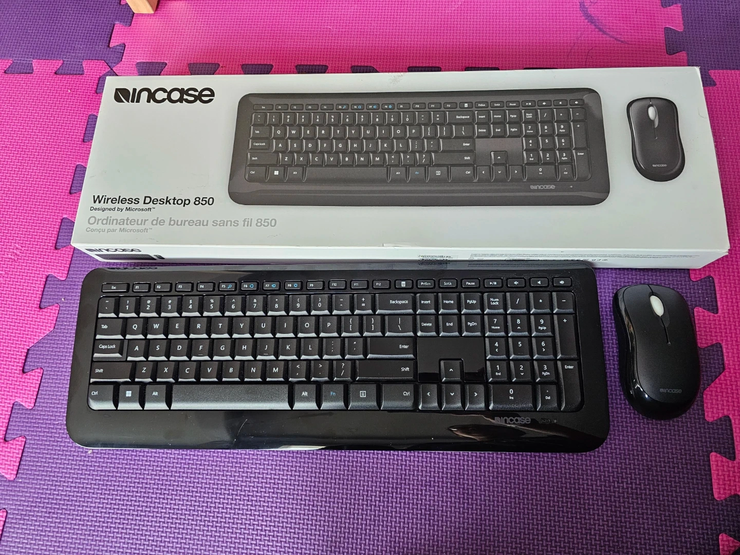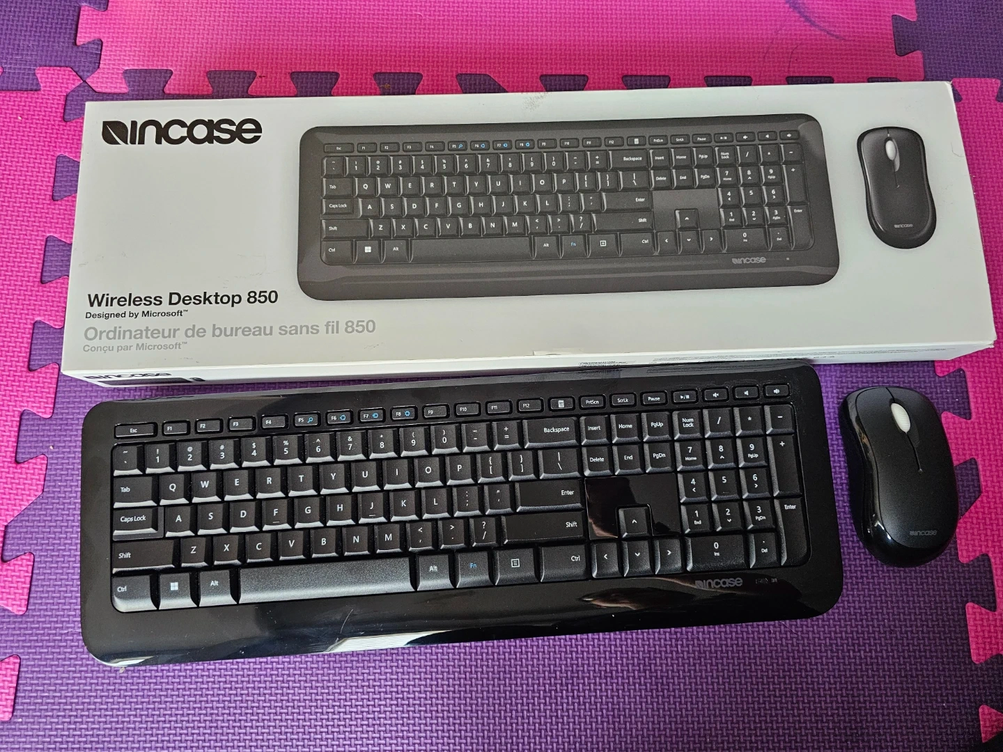 This is a black Incase Wireless Desktop 850 keyboard and mouse combo. It's designed by Microsoft and is wireless. Perfect for anyone needing a reliable keyboard and mouse set for their computer!