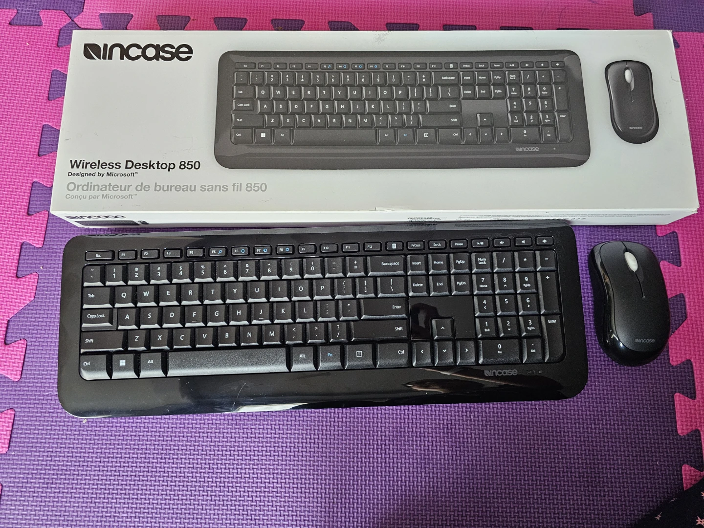 This is a black Incase Wireless Desktop 850 keyboard and mouse combo. It's designed by Microsoft and is wireless. Perfect for anyone needing a reliable keyboard and mouse set for their computer!
