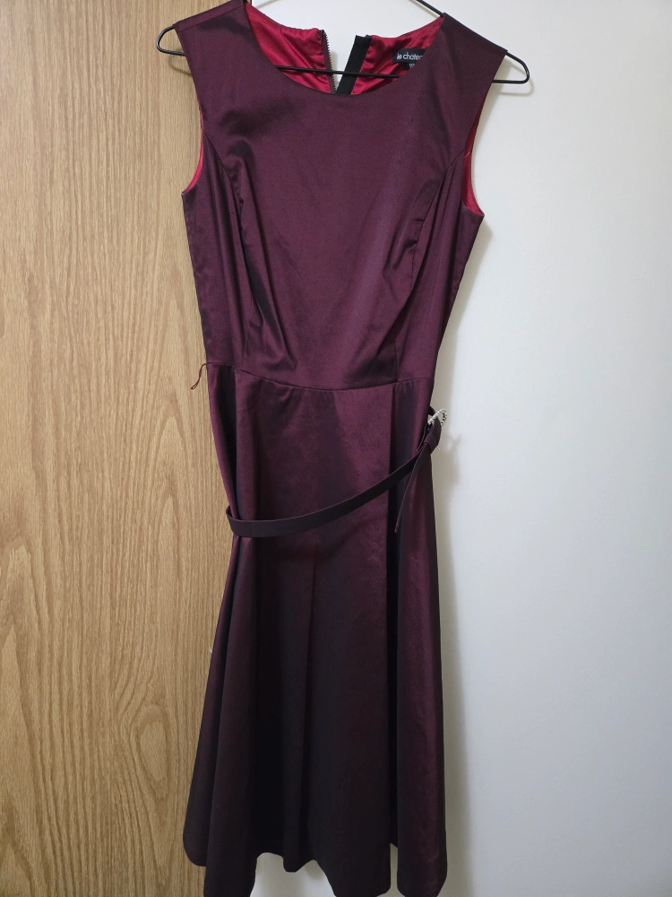 Selling a Le Chateau dress in size XXS. The dress is a beautiful burgundy colour and comes with a belt. Perfect for a night out or a special occasion!