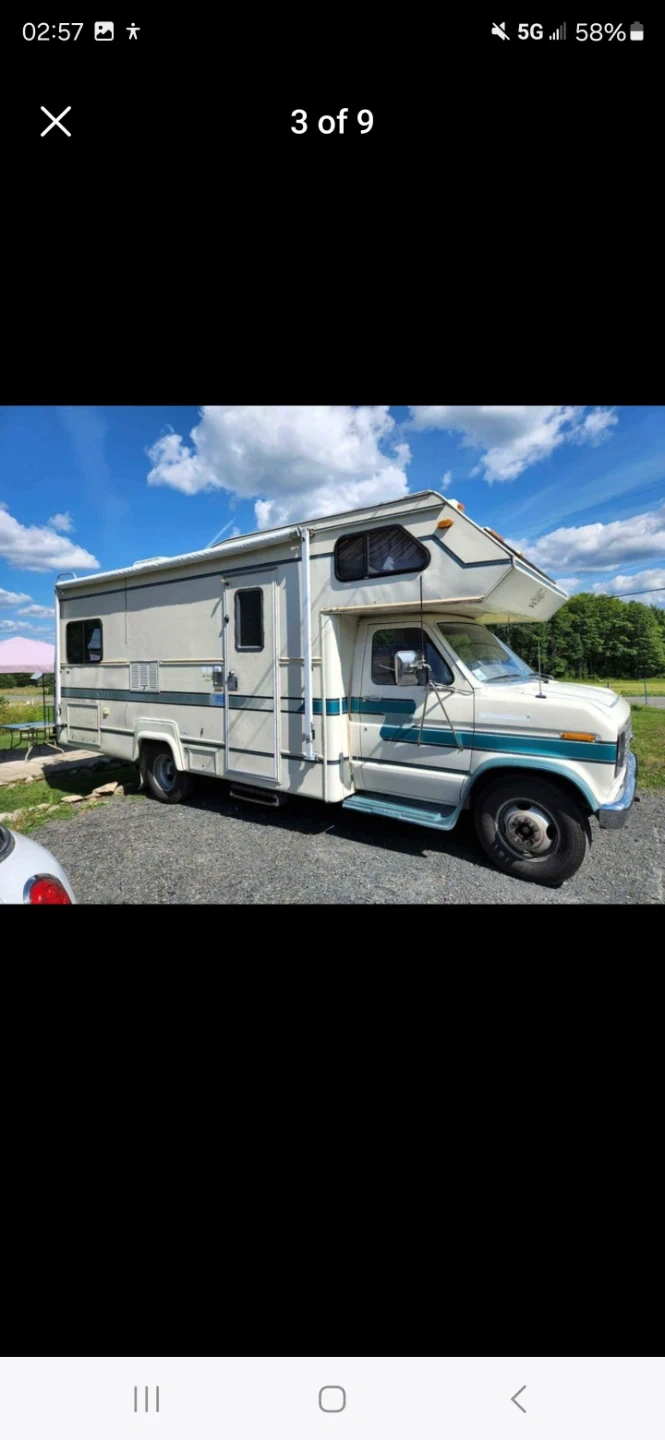 This Class C RV camper is ready for your next adventure! It features a dinette area that converts to a bed, and a separate sleeping area. The kitchen includes a sink and stove. Ample storage cabinets throughout. All Propane Equipment work well, Heater, Hot Water, Fridge. Freezer and Oven.