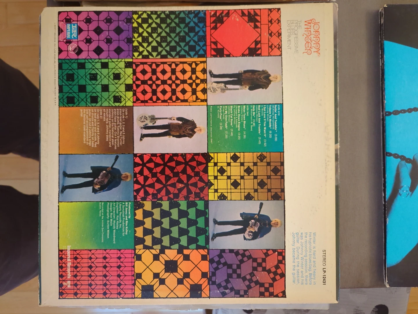 This is the Johnny Winter The Progressive Blues Experiment vinyl record. It features tracks like 'Prodigal Son' and 'Rollin' Stone'.