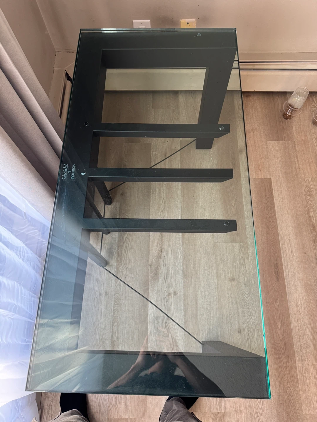 Coffee table: Modern Glass Top Desk with Black Metal Frame