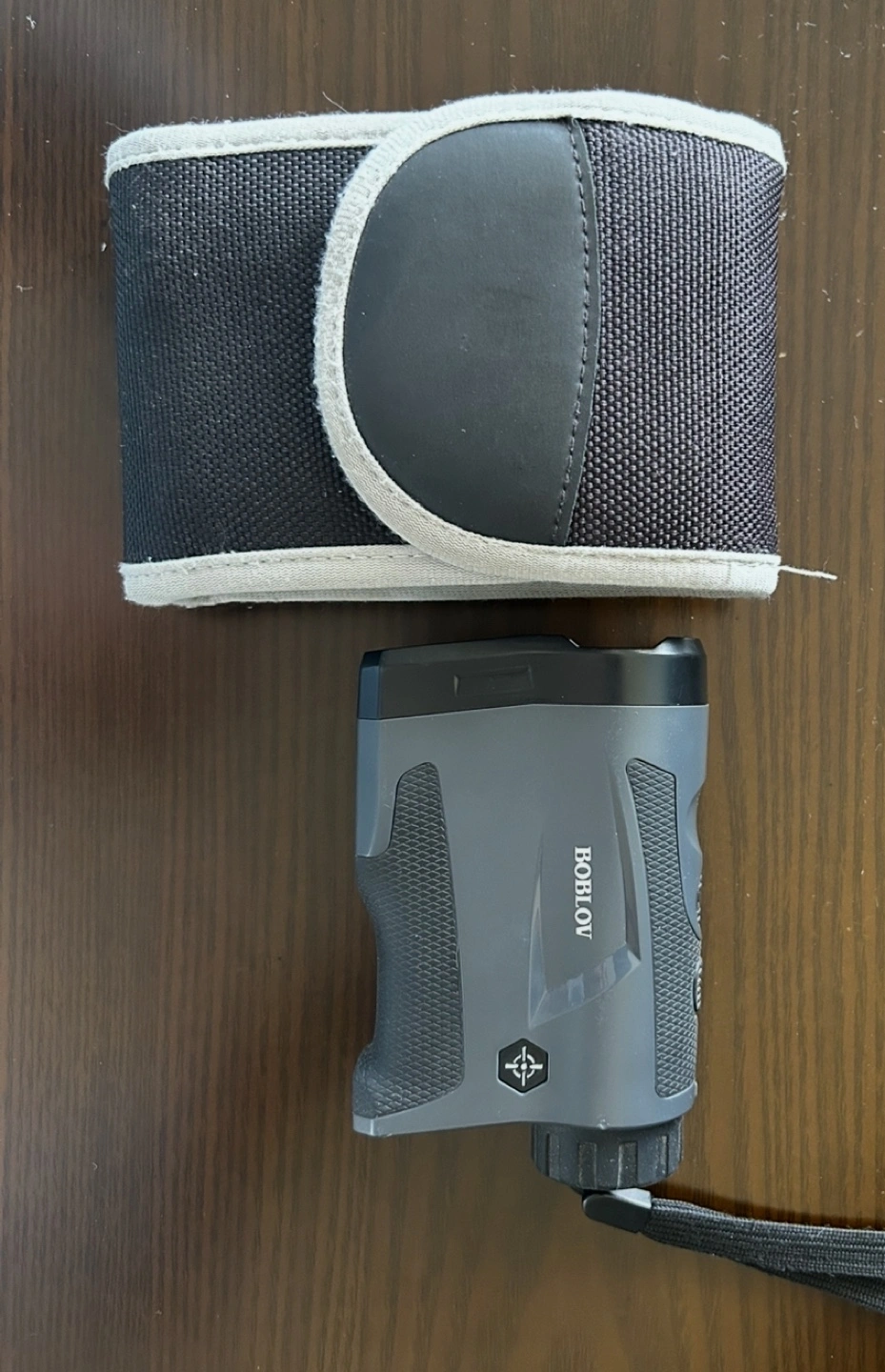 Compact laser rangefinder. Includes carrying case. Great for golfing.