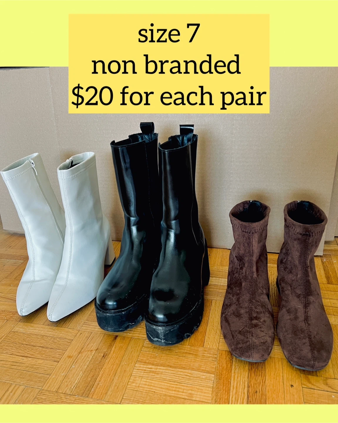 Buy & SellBootsBoots$20In a good condition. Used occasionally. Moving out sale so clearing my closet. It’s cash only and for pickup at 666 Ontario Street !ConditionGoodSize7BrandUnbranded WHERE TO MEETCheck LocationView MapSELLERverifiedCeceN St. James Town16412 reviews0 chats·0 favorites·44 viewsSEND CHAT TO SELLERHi Cece! I’m interested in your listing.Hi Cece! I’m interested in your listing.Get the Karrot app to chatSign In to chat